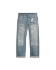 这款牛仔裤采用宽松版型,选用镶边牛仔布制成,采用靛蓝色织工艺,饰有斜纹布补丁,搭配纽扣式门襟,采用 Sanforized ® 预缩处理,以减轻缩水情况