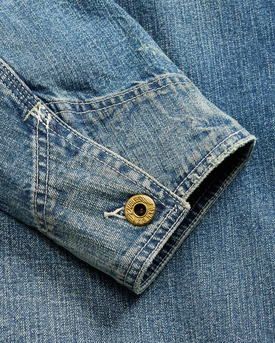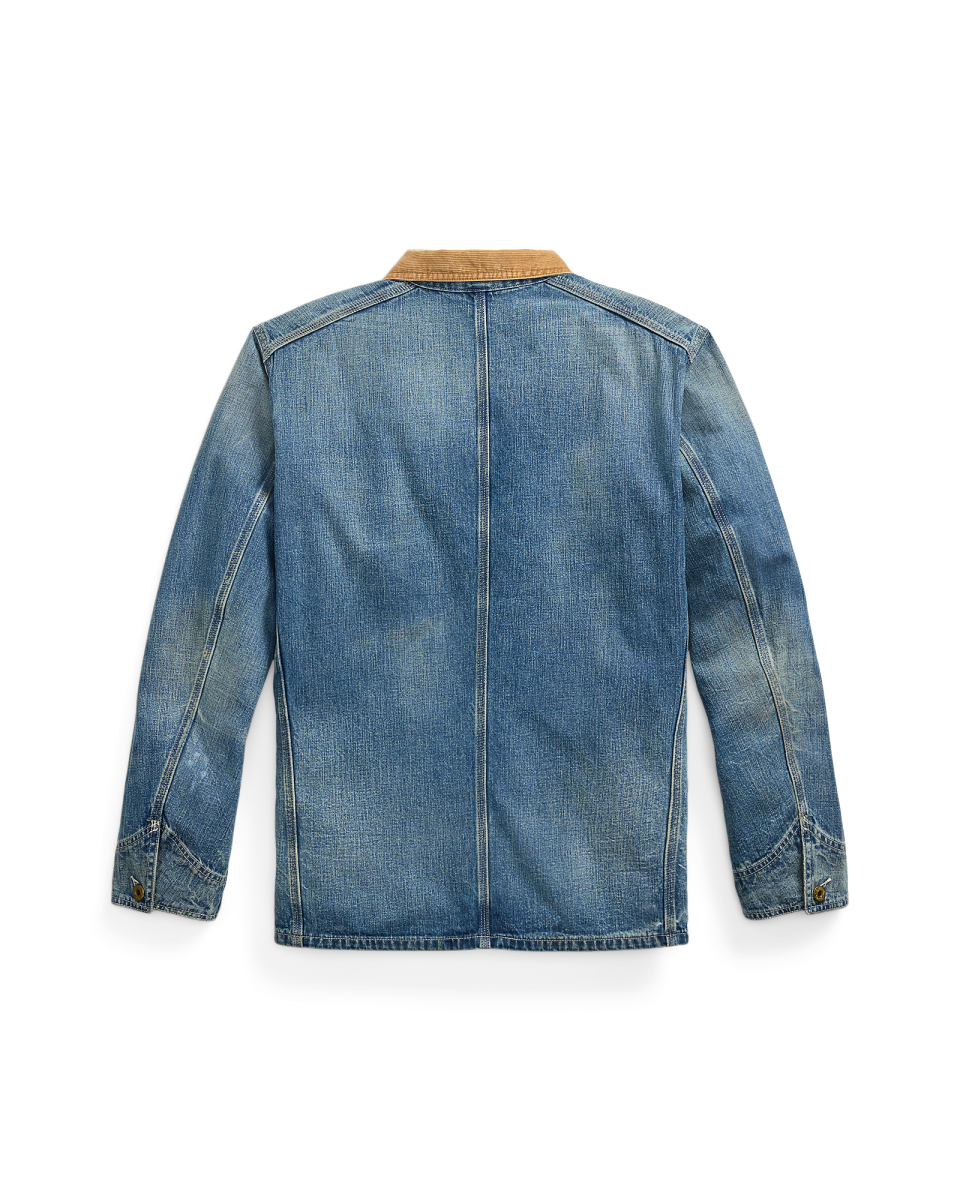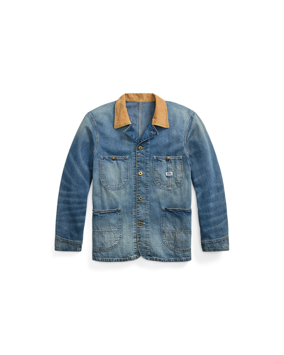 这款轻盈的夹克选用经靛蓝染色的牛仔布制成,配有细棱纹灯芯绒衣领,细节灵感源自上个世纪 40 年代的工作服,复古版型:落肩,腰部略呈锥形,采用 Sanforized ® 预缩处理,尽可能减轻缩水情况