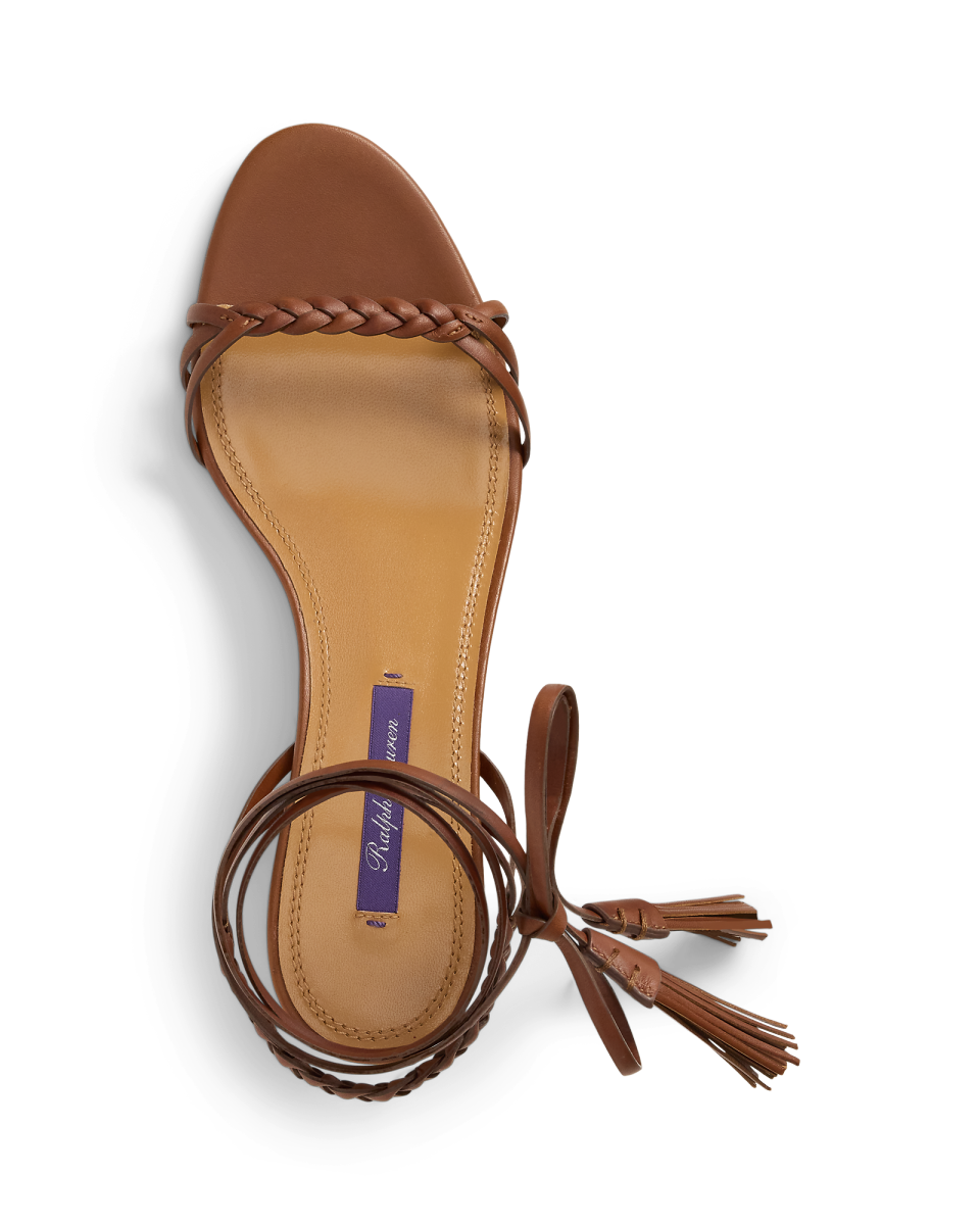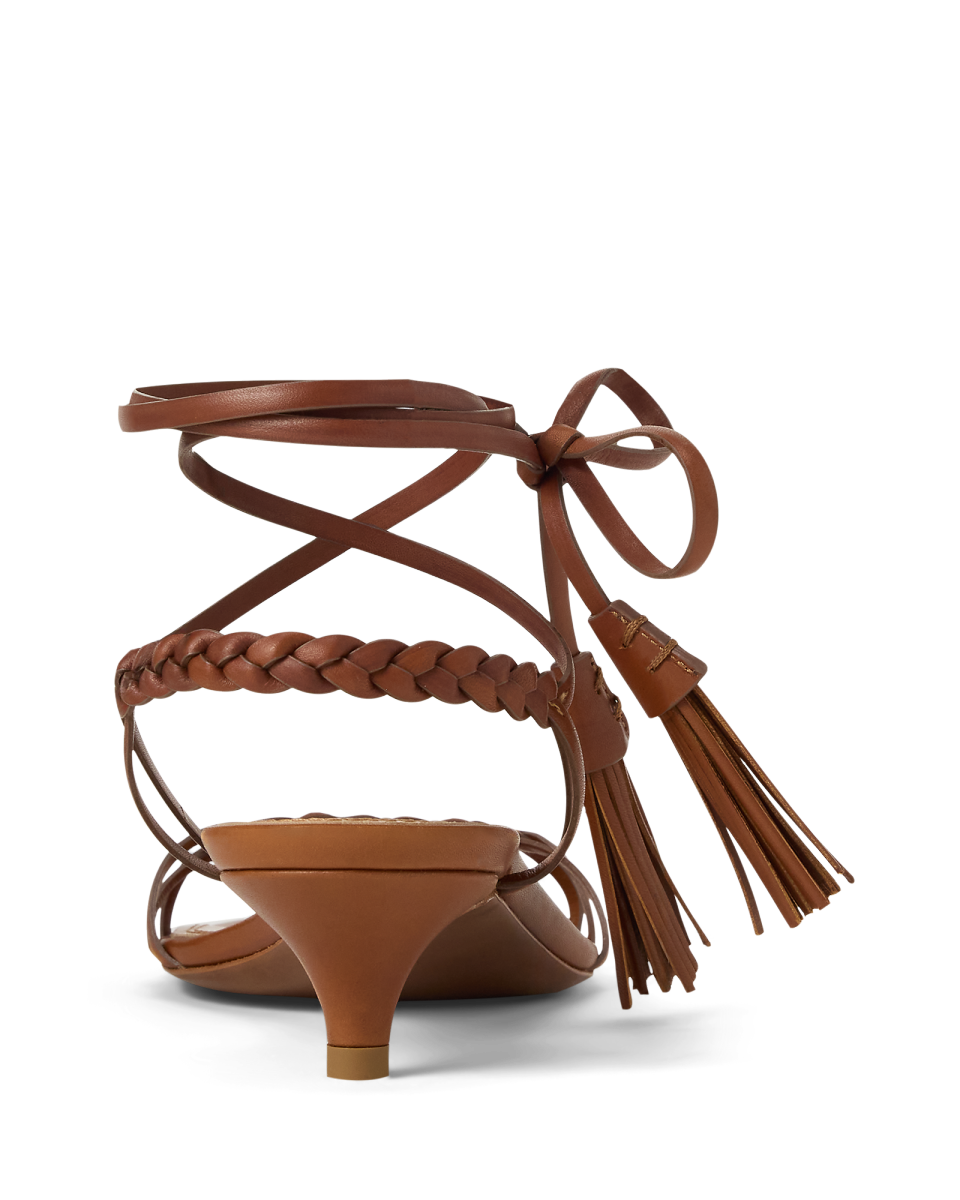 这款 Alexandrea 凉鞋配有约 3.5 厘米微跟,采用现代风格系带廓形,珍选抛光全粒面牛皮革制成,增添迷人光泽,呈现富有层次的浓郁色调,流苏和编织系带饰有缝制的三角形袢