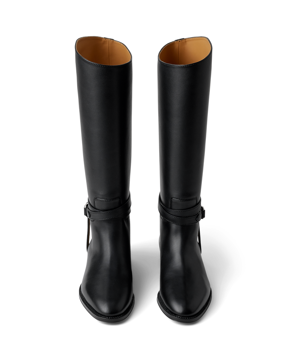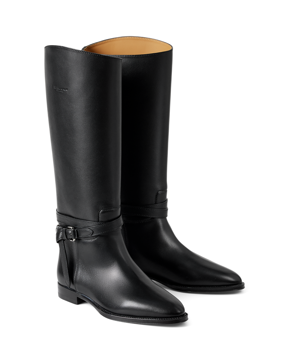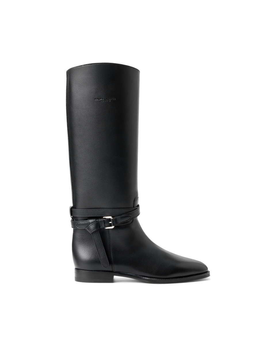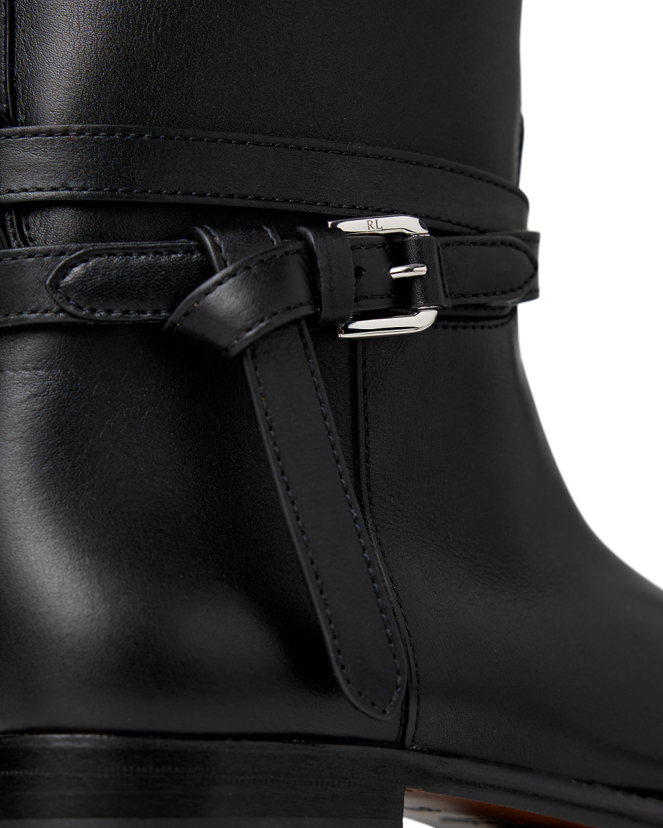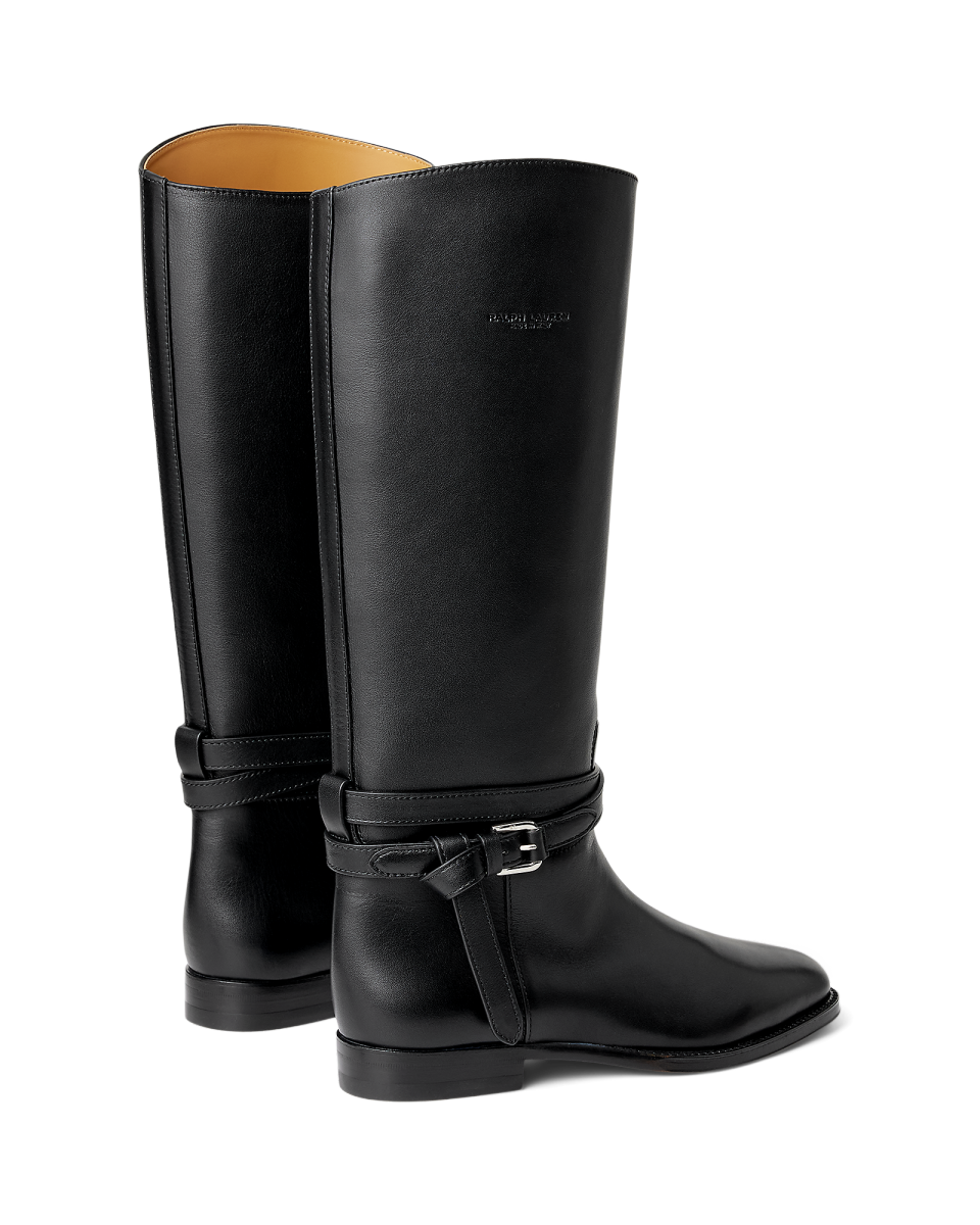 这款 Donnely 靴子选用全粒面牛皮革制成,配有约 2.5 厘米粗跟,经特定蜡面处理,增添光泽感,搭配环绕式搭扣踝部系带,饰有 Ralph Lauren Made in Italy 凹纹字样,为整体造型锦上添花