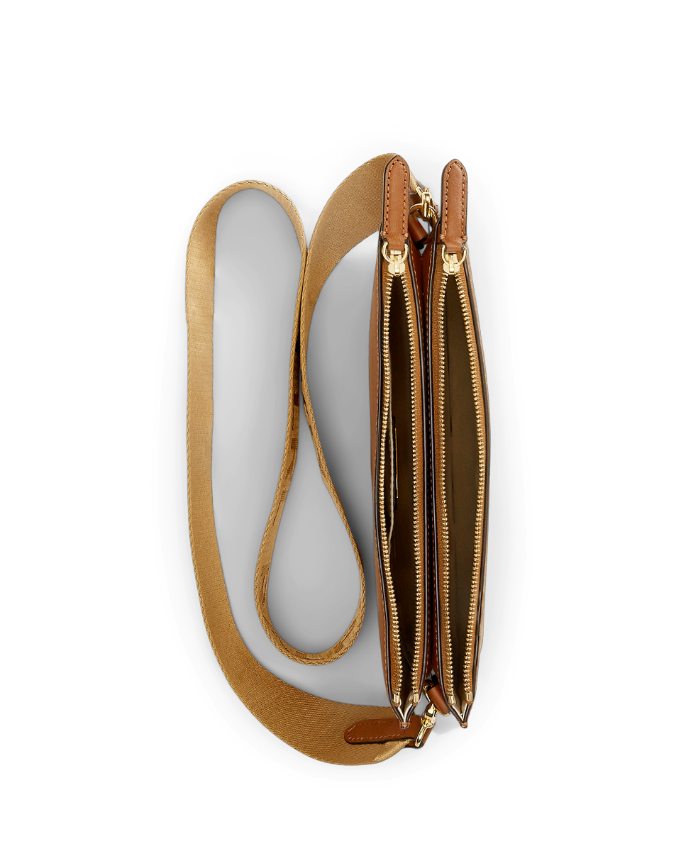 这款 Landyn 中号包袋采用两用设计,配有牛皮革斜挎肩带与 Lauren Ralph Lauren 字样编织背带,这两条包袋均可拆卸可调节,便于打造多种造型,选用柔软的全粒面牛皮革制成,具有顺滑质感,可用于存储您的常备品