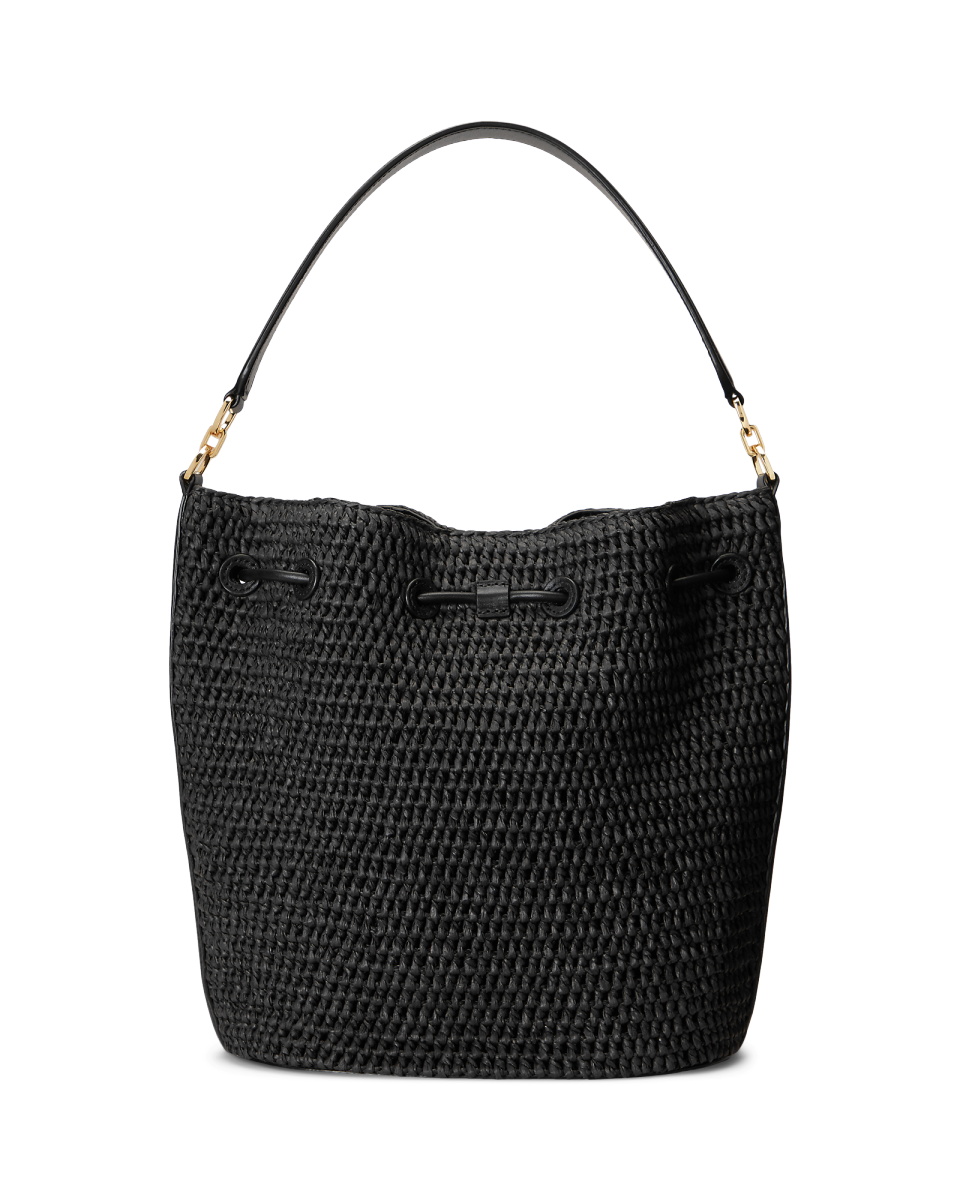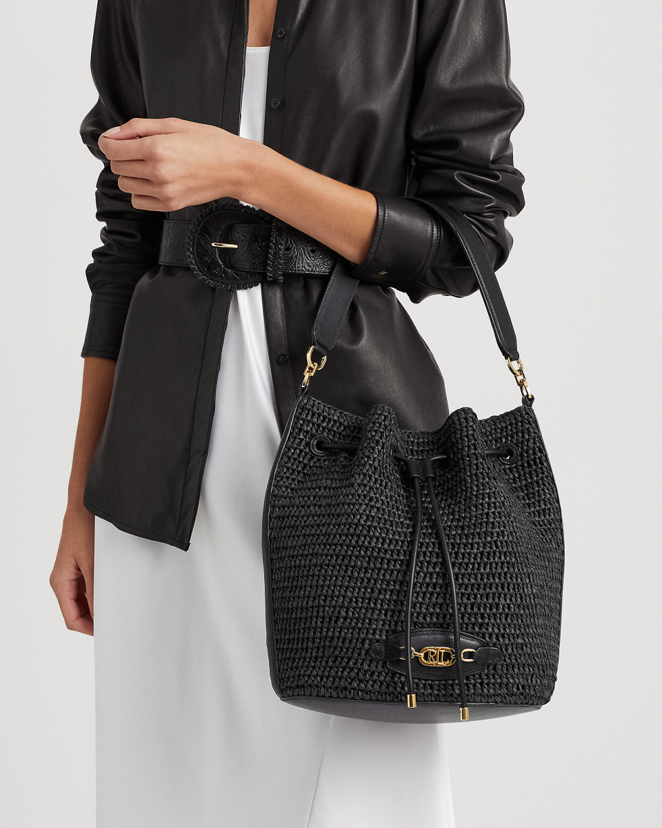 Lauren 的标志性 Andie 抽绳包经本季全新演绎,选用拉菲亚纤维制成,搭配具有顺滑质感的柔软全粒面牛皮革饰边,包身宽敞,可轻松收纳常备物品,是温暖天气的理想之选。饰有大号 LRL 字样金属抽绳扣,呈现标志性 Lauren Ralph Lauren 外观