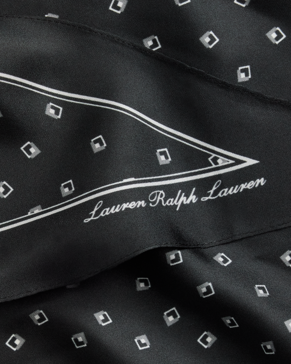 这款菱形围巾选用雅致的桑蚕丝面料制成,饰有本季流行的几何印花,彰显现代风尚,饰有 Lauren 的签名徽标,彰显标志性风格