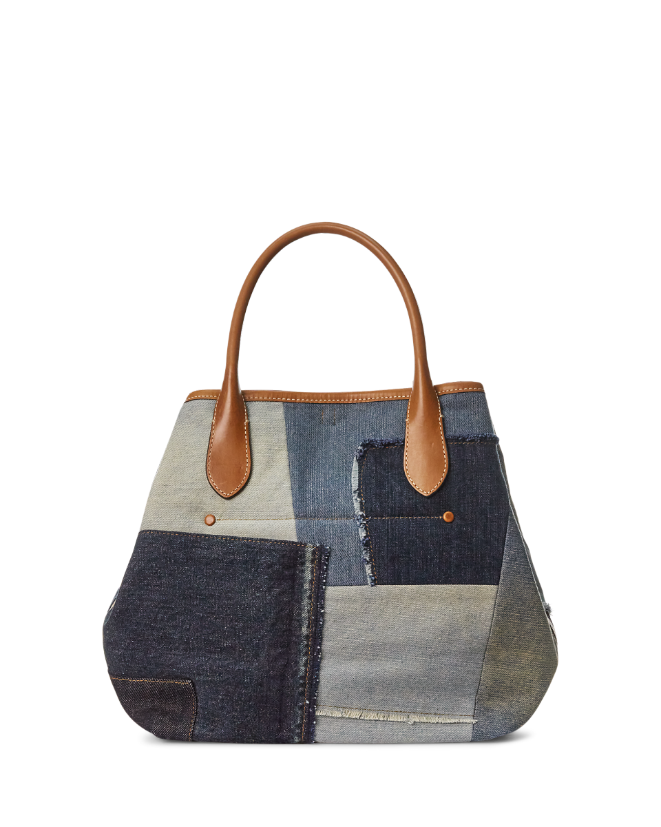 这款宽敞的 Bellport 托特包选用同色系牛仔布拼接而成,呈现柔软包身与有型结构的理想平衡,以实用时尚为设计宗旨,集两种外观于一体:经典托特包廓形和梯形廓形,将顶部右侧的肩带穿过顶部左侧的 D 型环,即可打造梯形廓形