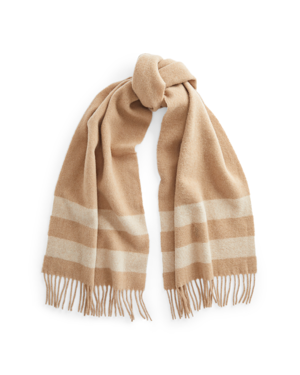 这款围巾选用舒适的面料制成,柔软又保暖,并饰有轻盈的流苏和标志性小马刺绣