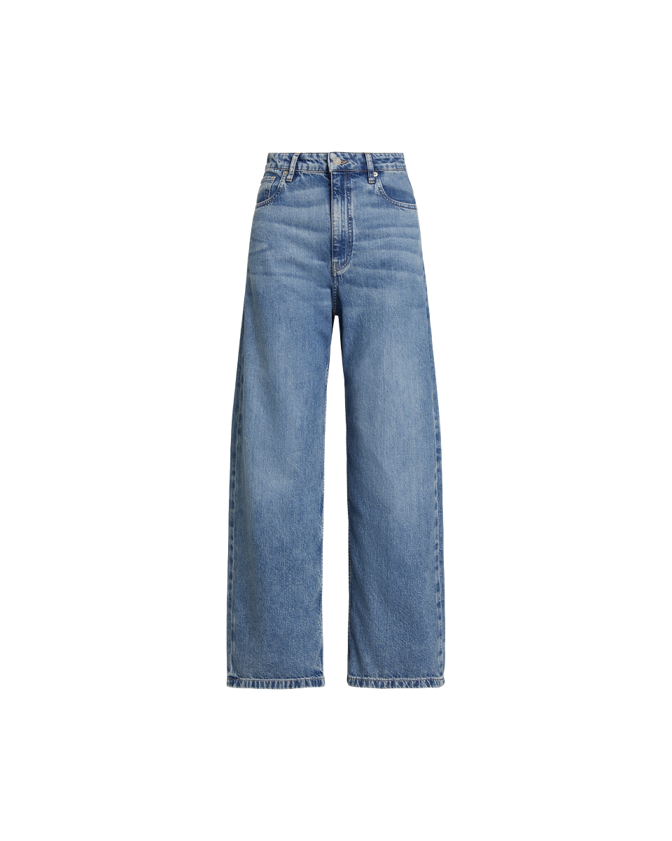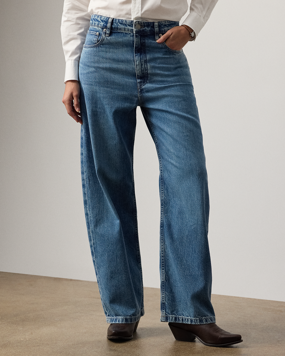 这款宽松的 Thompson 牛仔裤灵感源自 Lauren 先生个人收藏中备受喜爱的一款牛仔裤,选用轻盈的靛蓝色牛仔布于意大利制成,经色织和经典的中度水洗处理,饰有的做旧图案,采用经典中腰版型和传统五口袋造型,搭配拉链门襟,背面腰部右侧饰有 Ralph Lauren Made in Italy 凹纹字样补片