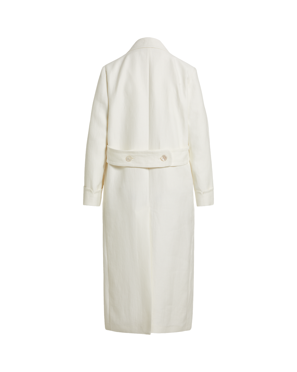 Polo 外套因备受马球手的喜爱而得名,他们在比赛间隙身穿这种外套保暖,本季这款 Taylan 外套选用密织舒适亚麻纤维制成,具有雅致的垂坠感和柔软的手感,搭配双排扣廓形,背面配有腰带,搭配饰有 Ralph Lauren 徽标的珠母贝纽扣,为整体造型锦上添花