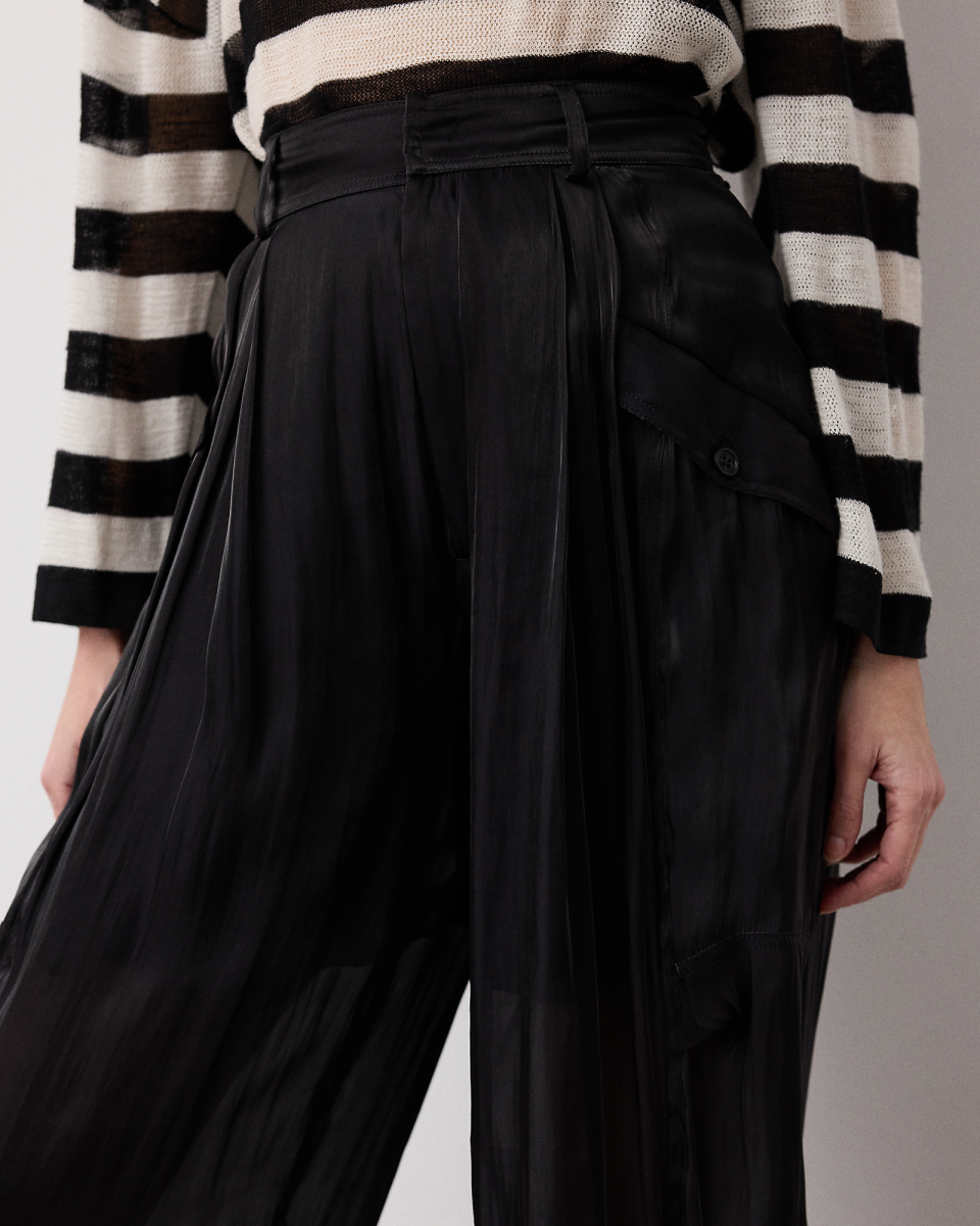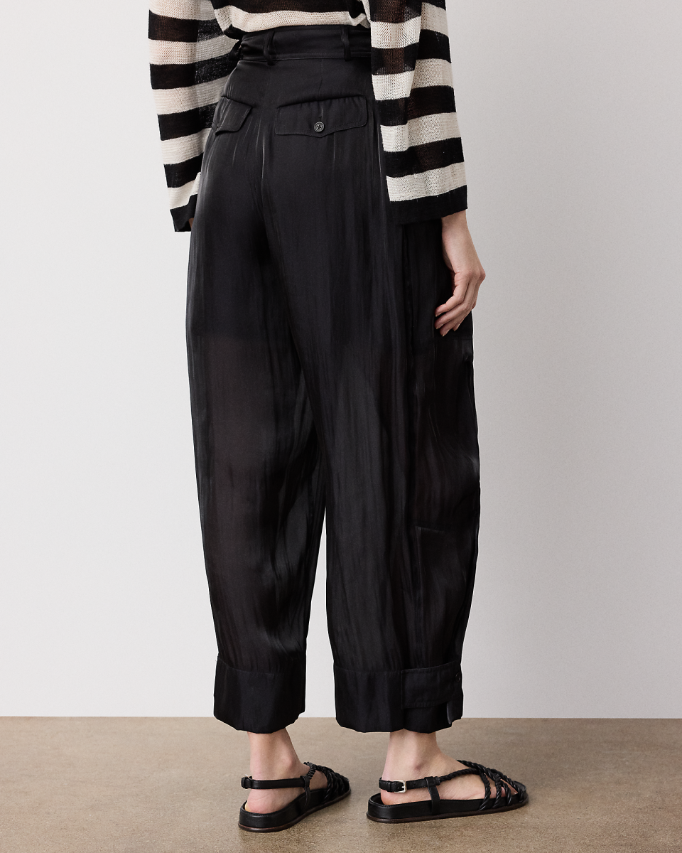 这款实用风格常备工装长裤经 Sonya 演绎,采用高腰萝卜裤廓形和优雅的锥形裤脚,是工装长裤的现代诠释,选用舒适的面料制成,呈现绚丽效果,配有多个口袋,裤脚配有扣袢,裤长及踝