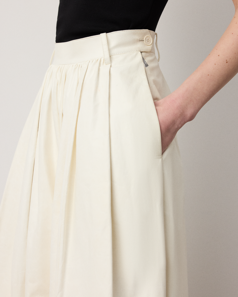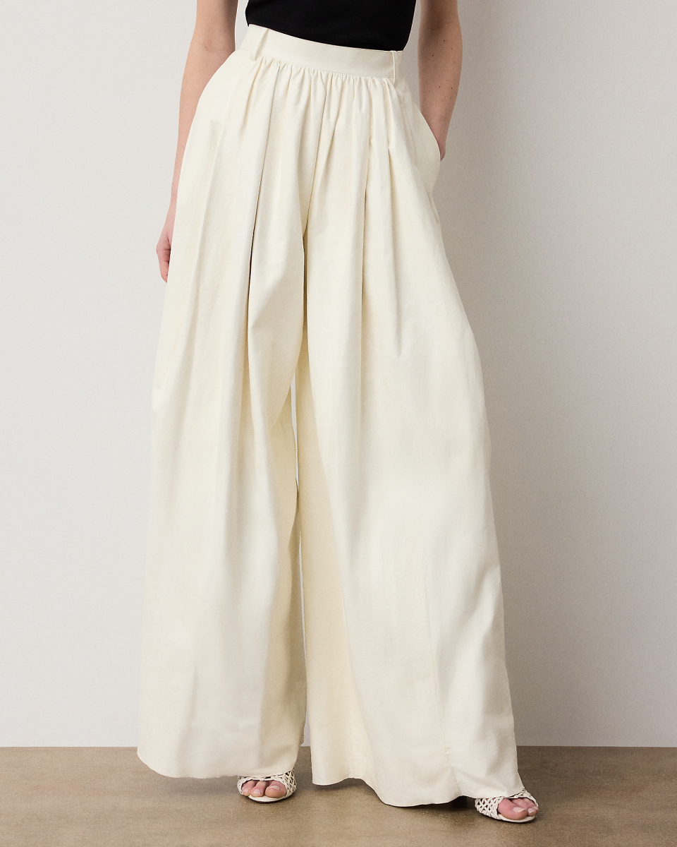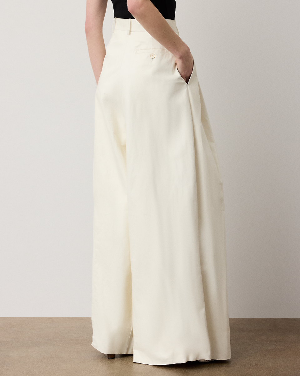 这款时尚 Vannesa 长裤线条流畅,采用高腰设计和个性的阔腿廓形,较具魅力,是 Ralph Lauren 对经典单品的焕新演绎,选用柔软的全粒面羊皮革制成,饰有从裤腰延伸至裤脚的优雅褶裥