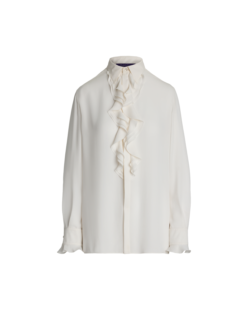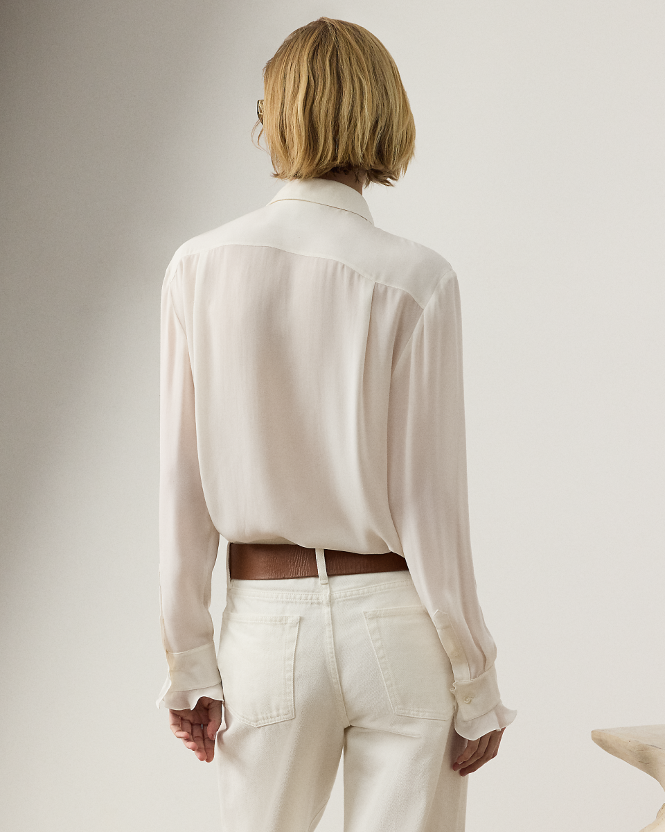 这款意大利制造的 Addison 衬衫采用隐藏式门襟和尖领等经典衬衫元素,选用双层桑蚕丝乔其纱制成,呈现柔顺的垂坠感和雅致质感,门襟和袖口饰有褶边,增添浪漫气息