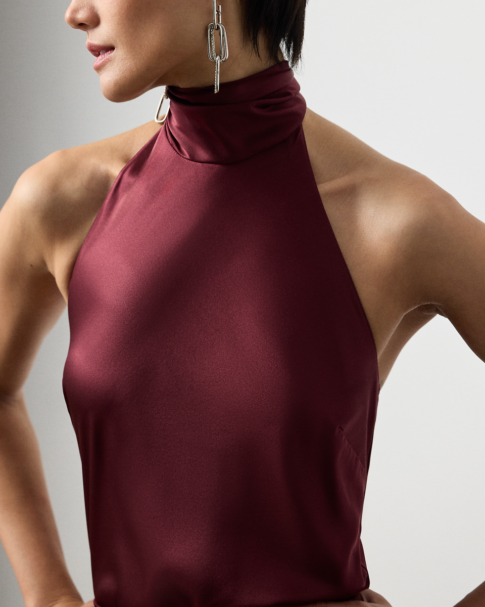 这款无袖女式衬衫焕新演绎 Ralph Lauren 的标志性 Chilton 连衣裙,彰显了 Lauren 先生以现代设计诠释经典廓形的能力,选用舒适的弹力软缎面料于意大利制成,具有柔顺的手感和雅致的垂坠感,采用绕颈系带廓形和迷人的露背设计,搭配悬垂在背部的同种面料系结,美丽动人