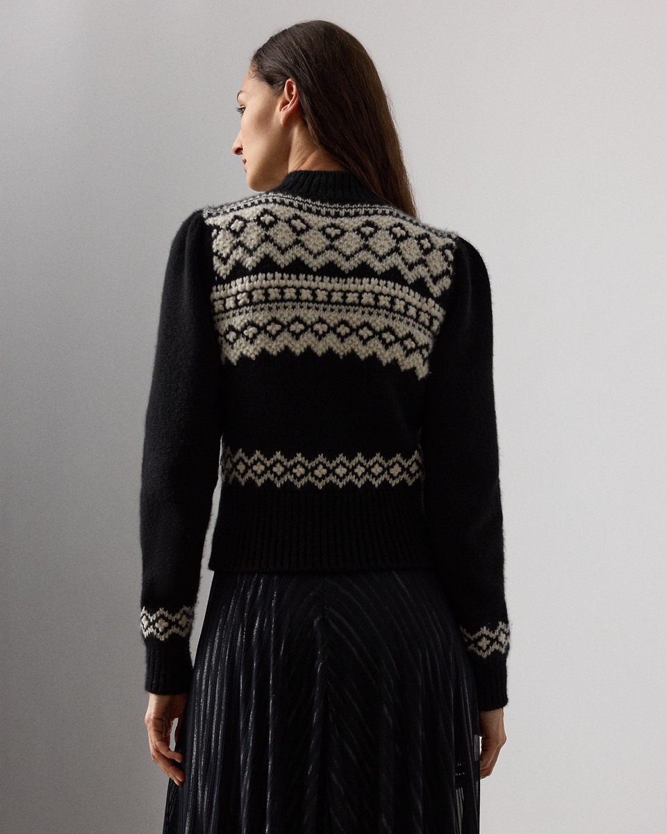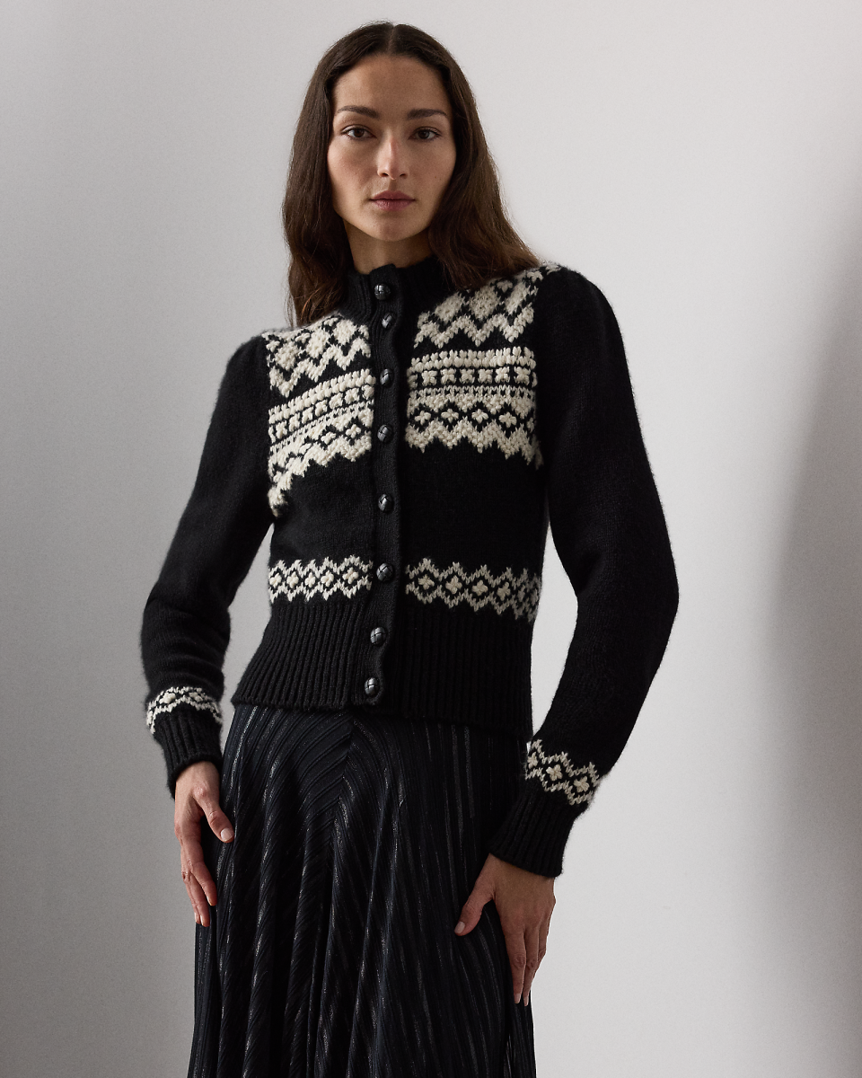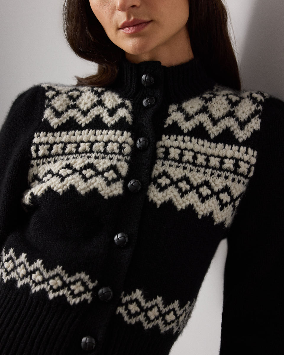 这款双色针织开襟毛衫灵感源自传统的北欧图案,采用传统的费尔岛针织工艺,选用山羊绒以梯背纹提花工艺织就,饰有精美的刺绣结饰图案,增添纹理质感,搭配编织纽扣,为整体造型锦上添花