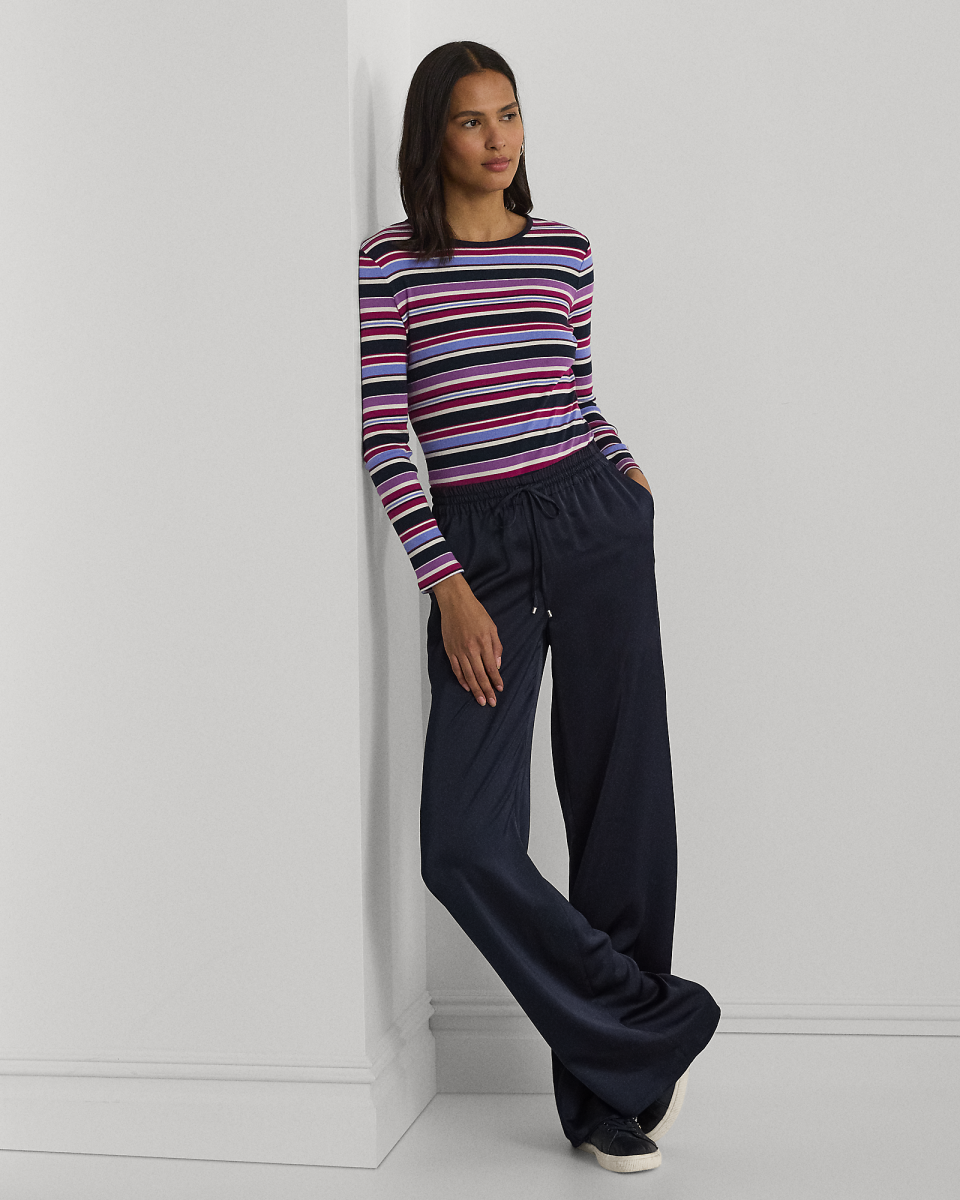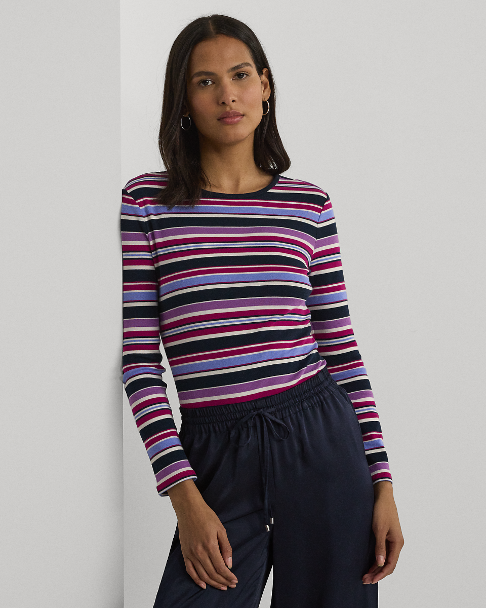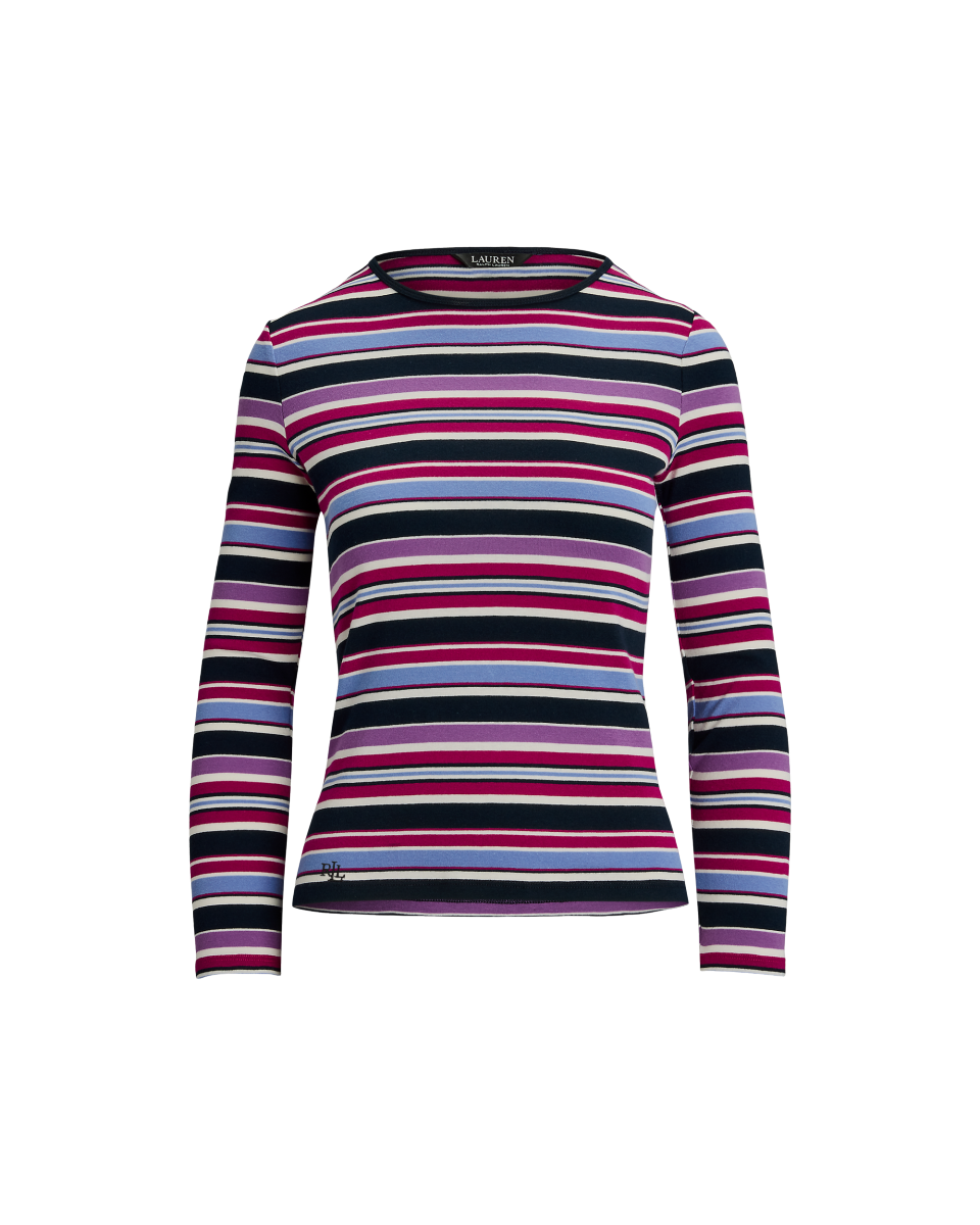 这款长袖 T 恤选用透气的罗纹针织棉质面料制成,手感柔软,采用修身廓形,饰有色织横条纹,下摆饰有 LRL 字样徽标刺绣,更添标志性风格