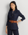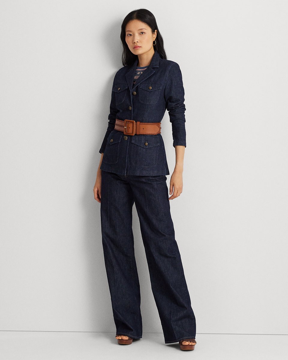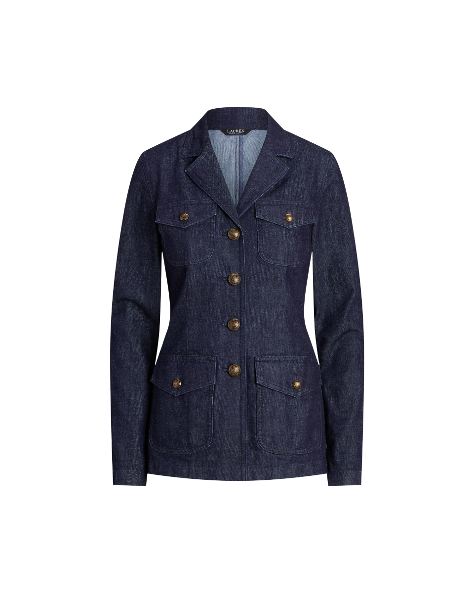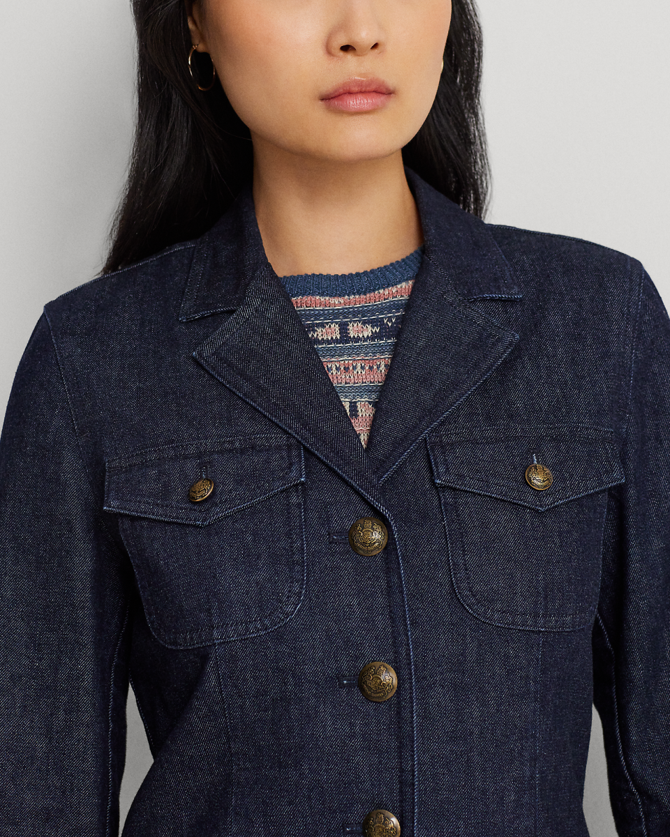 这款西装外套是 Lauren Ralph Lauren 对经典牛仔布夹克的焕新演绎,采用流线型西装外套廓形,搭配贴袋与三角凹口领,选用舒适的右斜纹布制成,经浓郁的深色水洗染色处理,配有复古饰章压花纽扣,彰显标志性风格