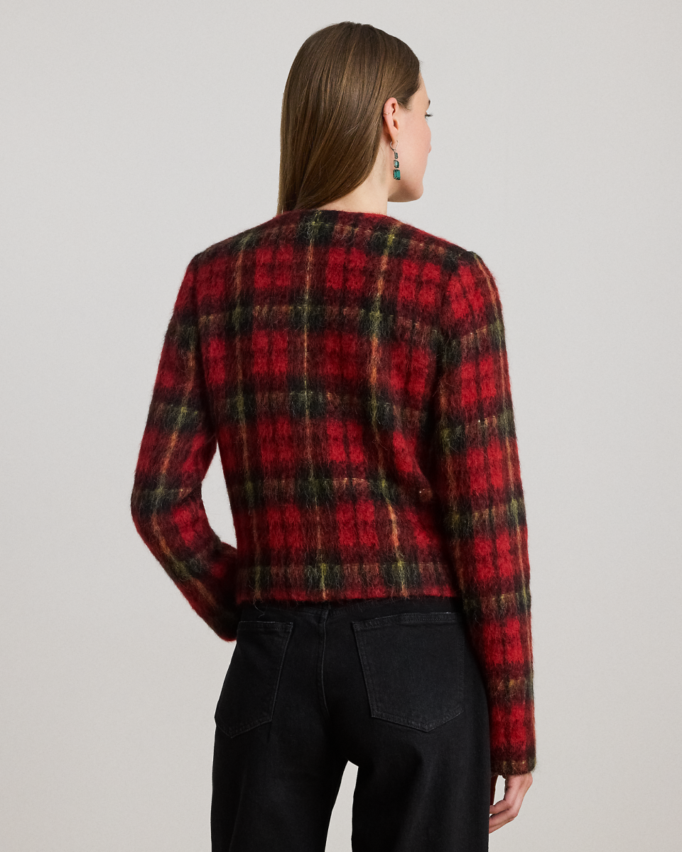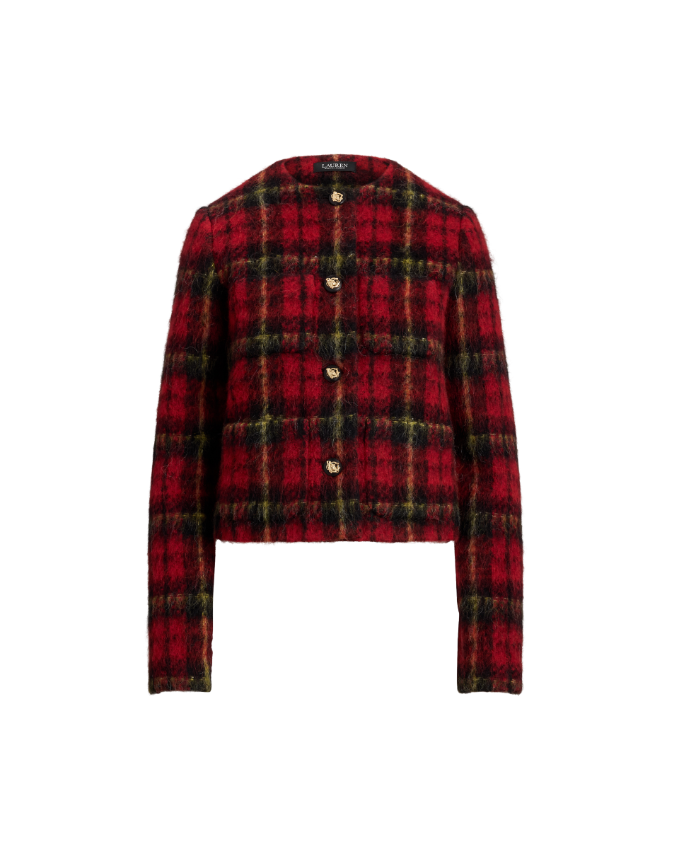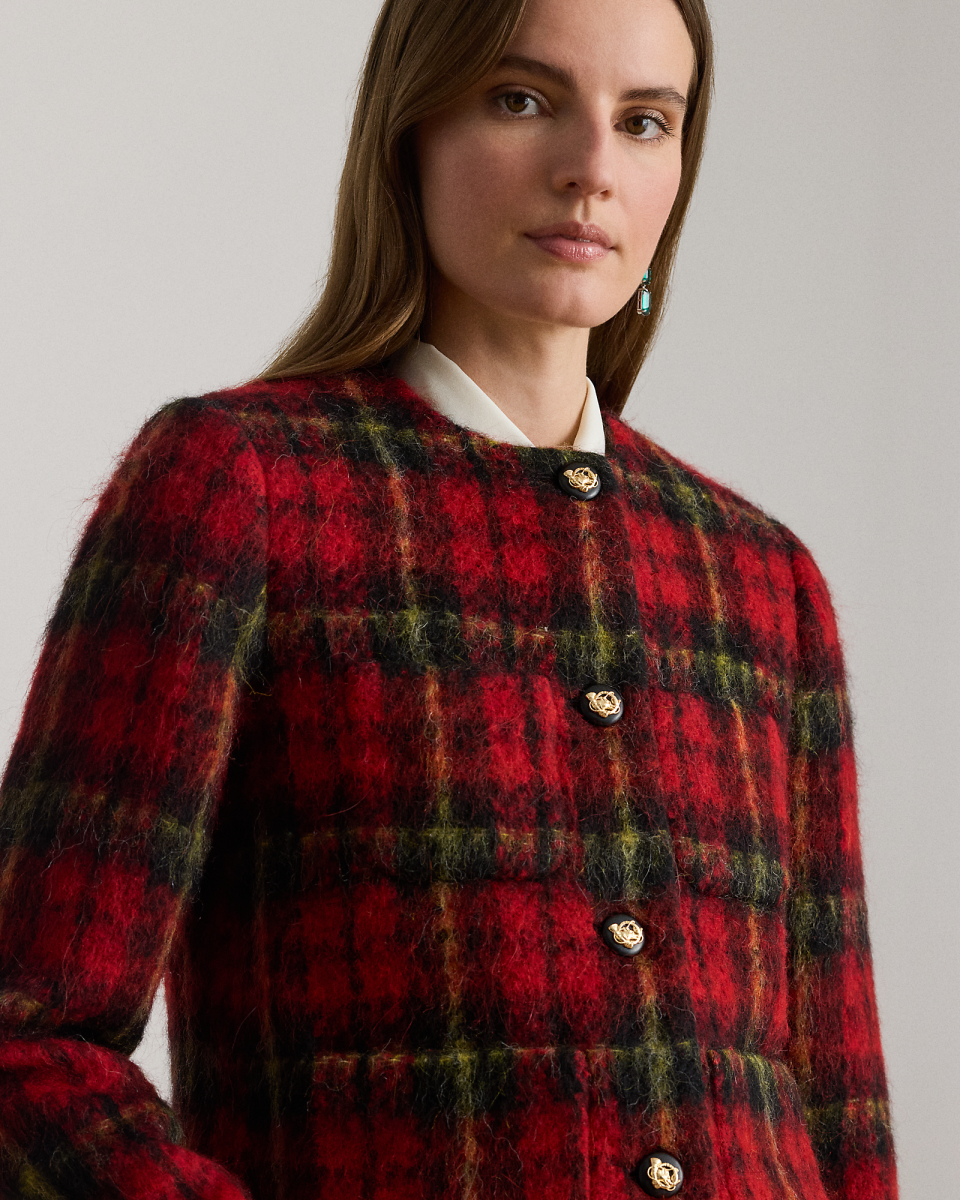 这款短款西装外套灵感源自复古设计,选用雅致的面料制成,饰有本季流行的色织格纹图案,配有狐狸头装饰纽扣,增添考究气息