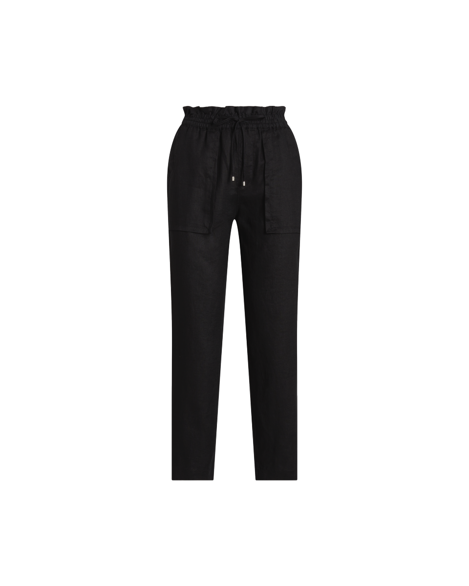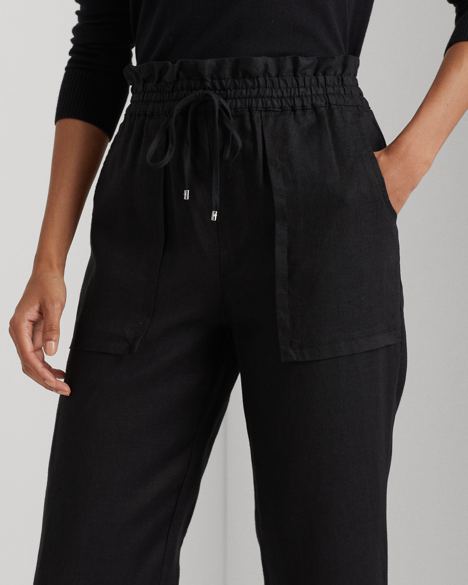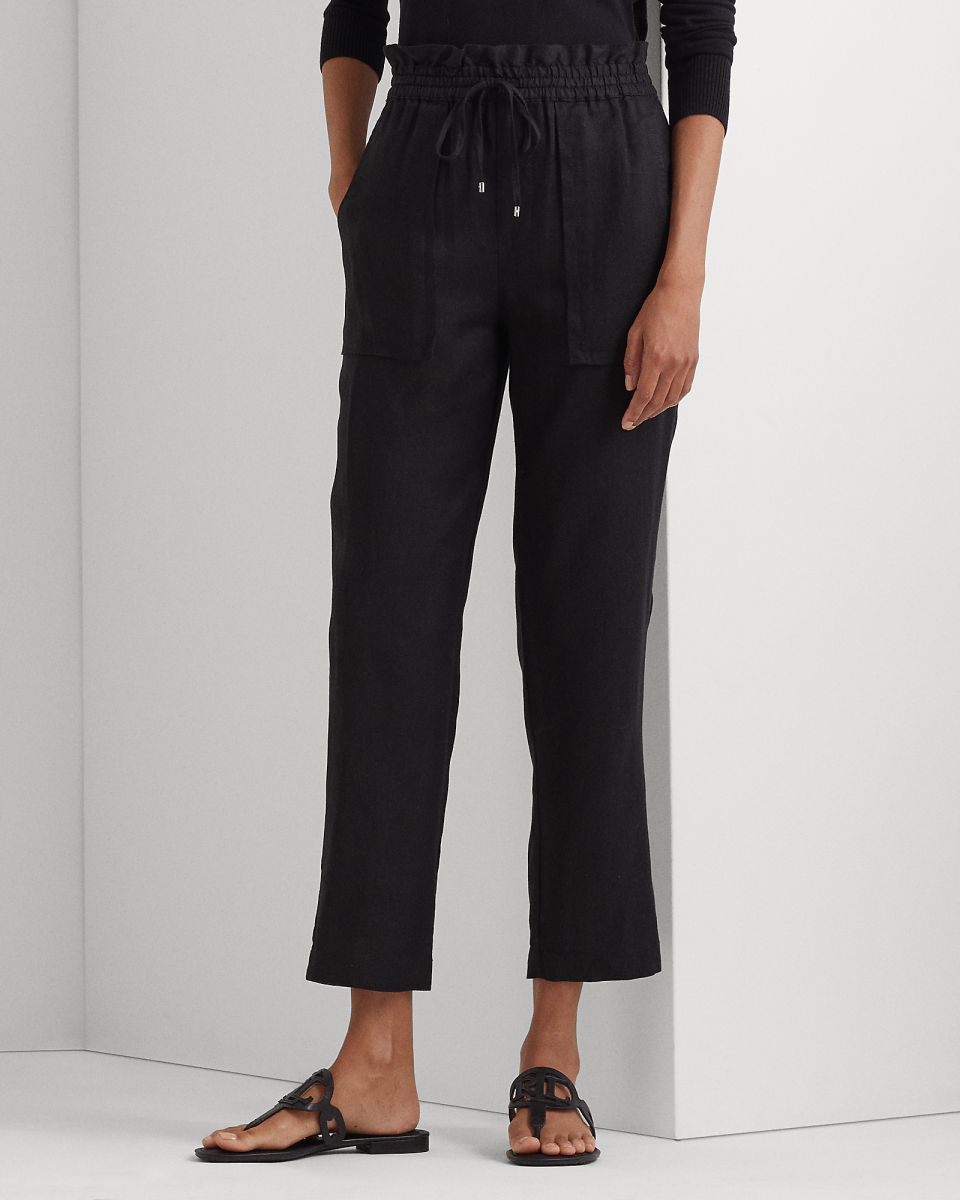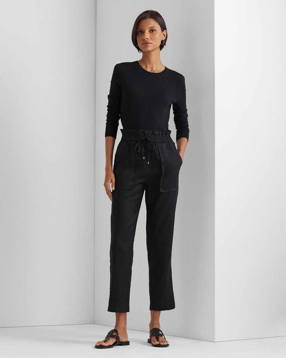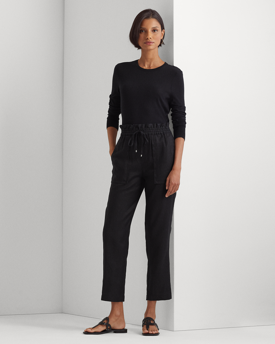 这款休闲及踝长裤选用轻盈的亚麻面料制成,搭配舒适的抽绳裤腰,复古黄铜抽绳尾端刻有 LRL 字样