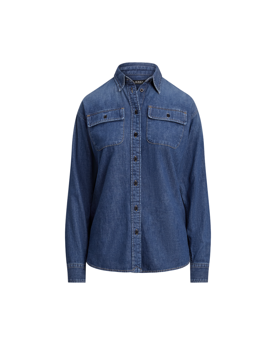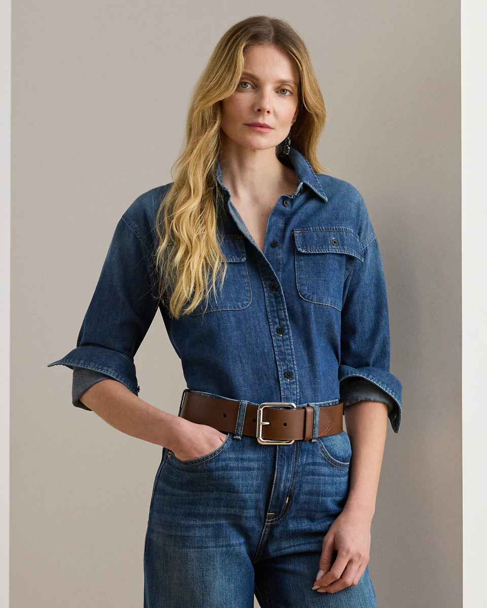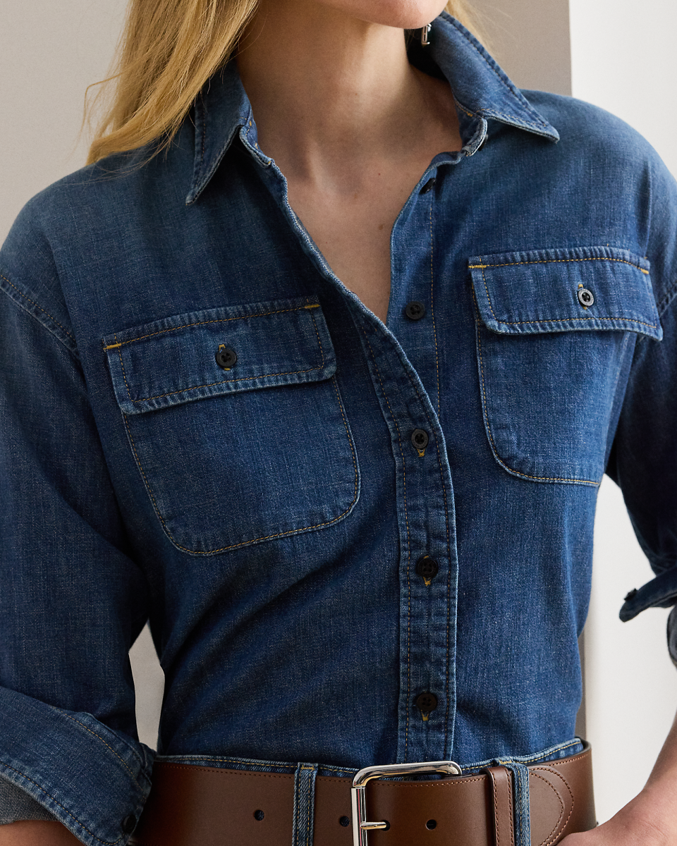 这款宽松版型有领衬衫选用斜纹牛仔布制成,配有标志性纽扣,是休闲常备单品