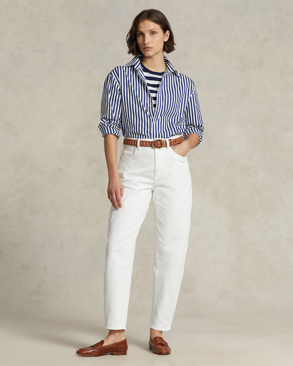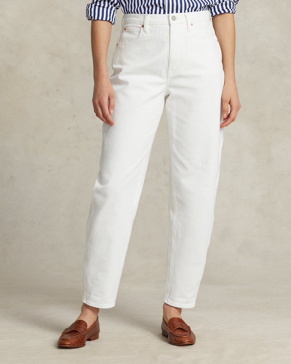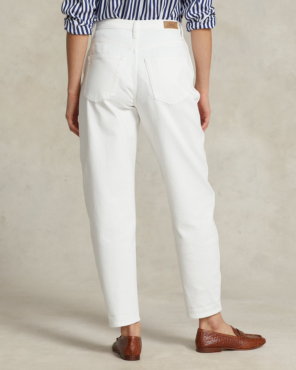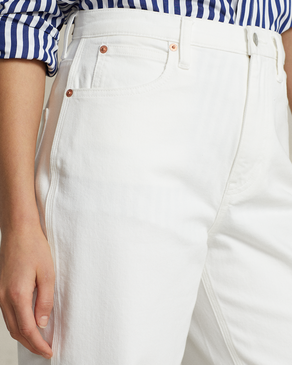 这款高腰牛仔裤选用轻盈的斜纹布制成,呈现牛仔装外观,打造利落造型