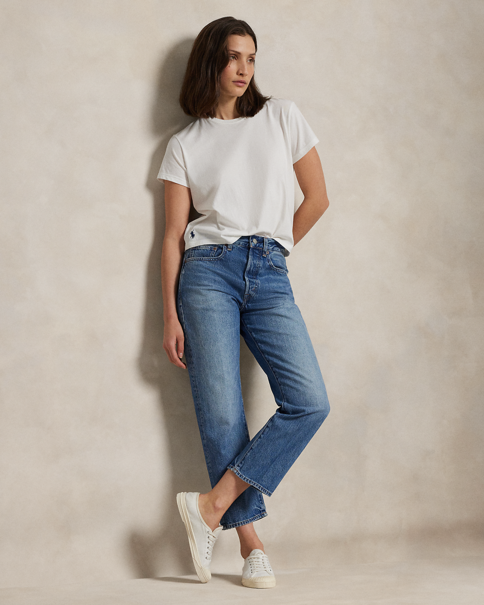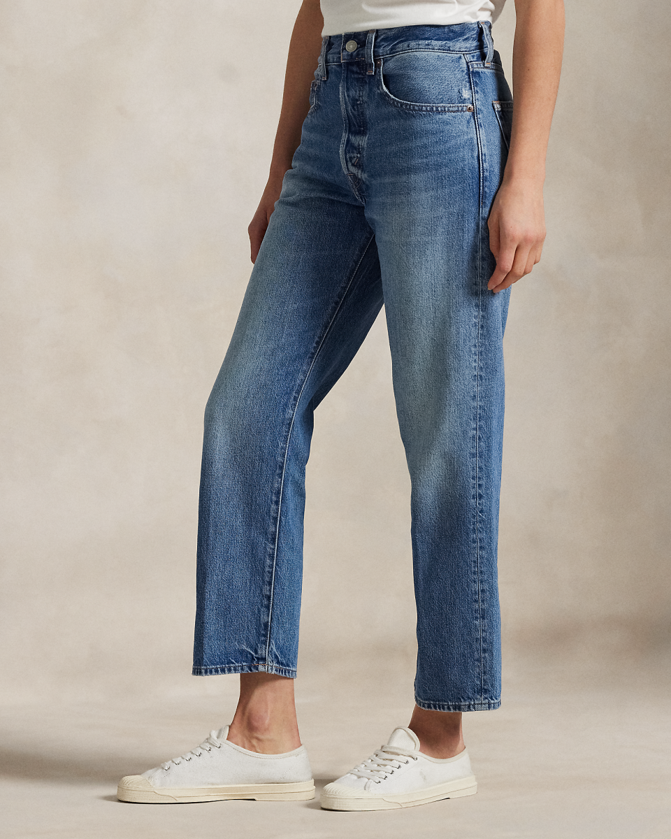 宽松直筒版棉九分牛仔裤