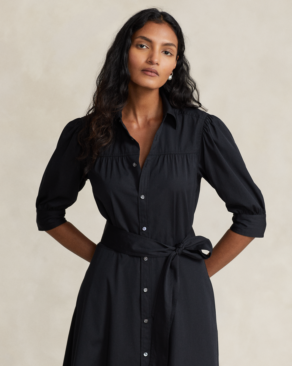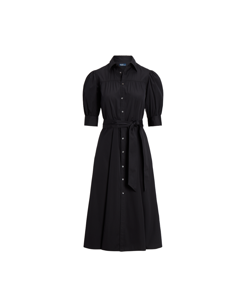 这款透气的衬衫式连衣裙选用挺括的棉质面料制成,采用修身宽下摆廓形,搭配泡泡短袖,前后过肩饰有缩褶