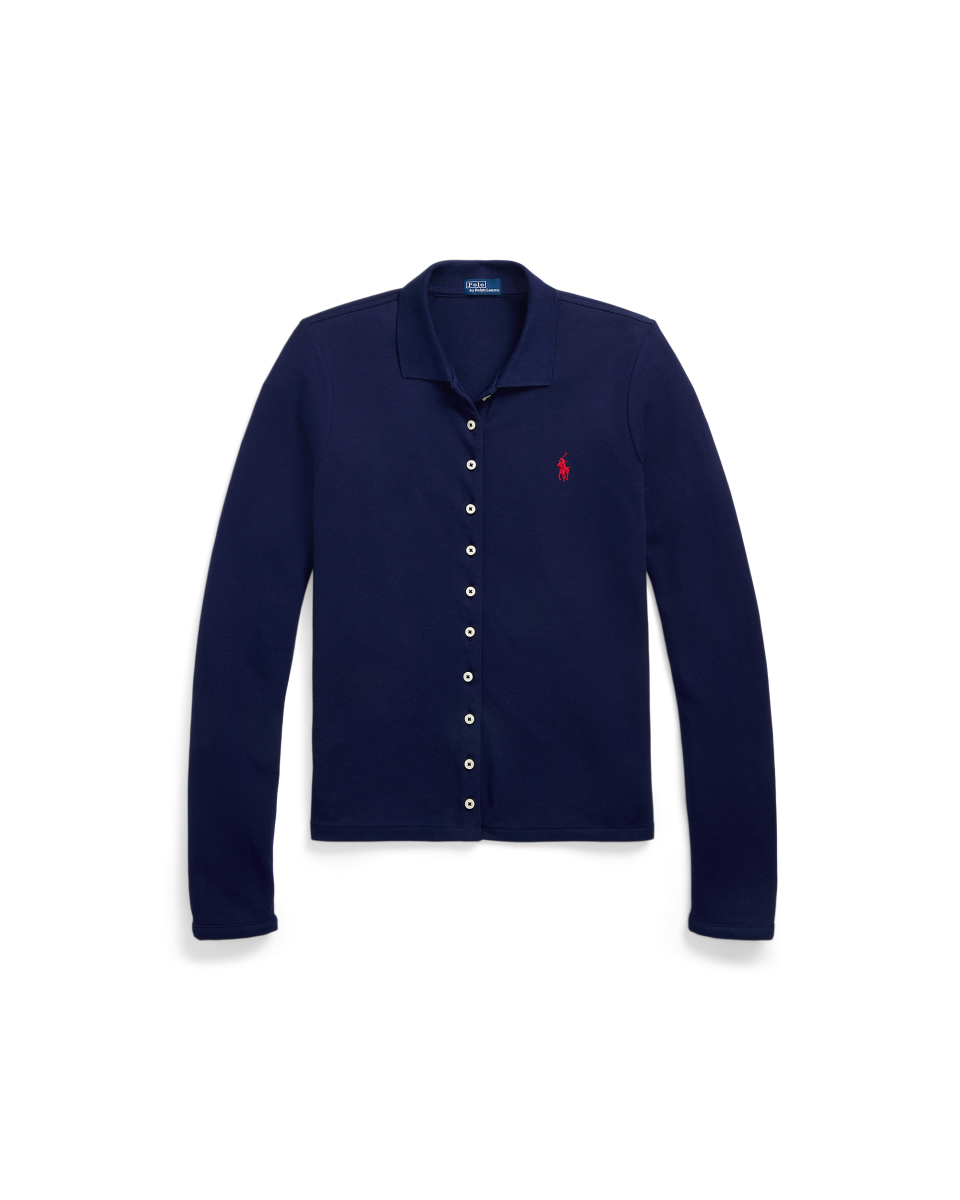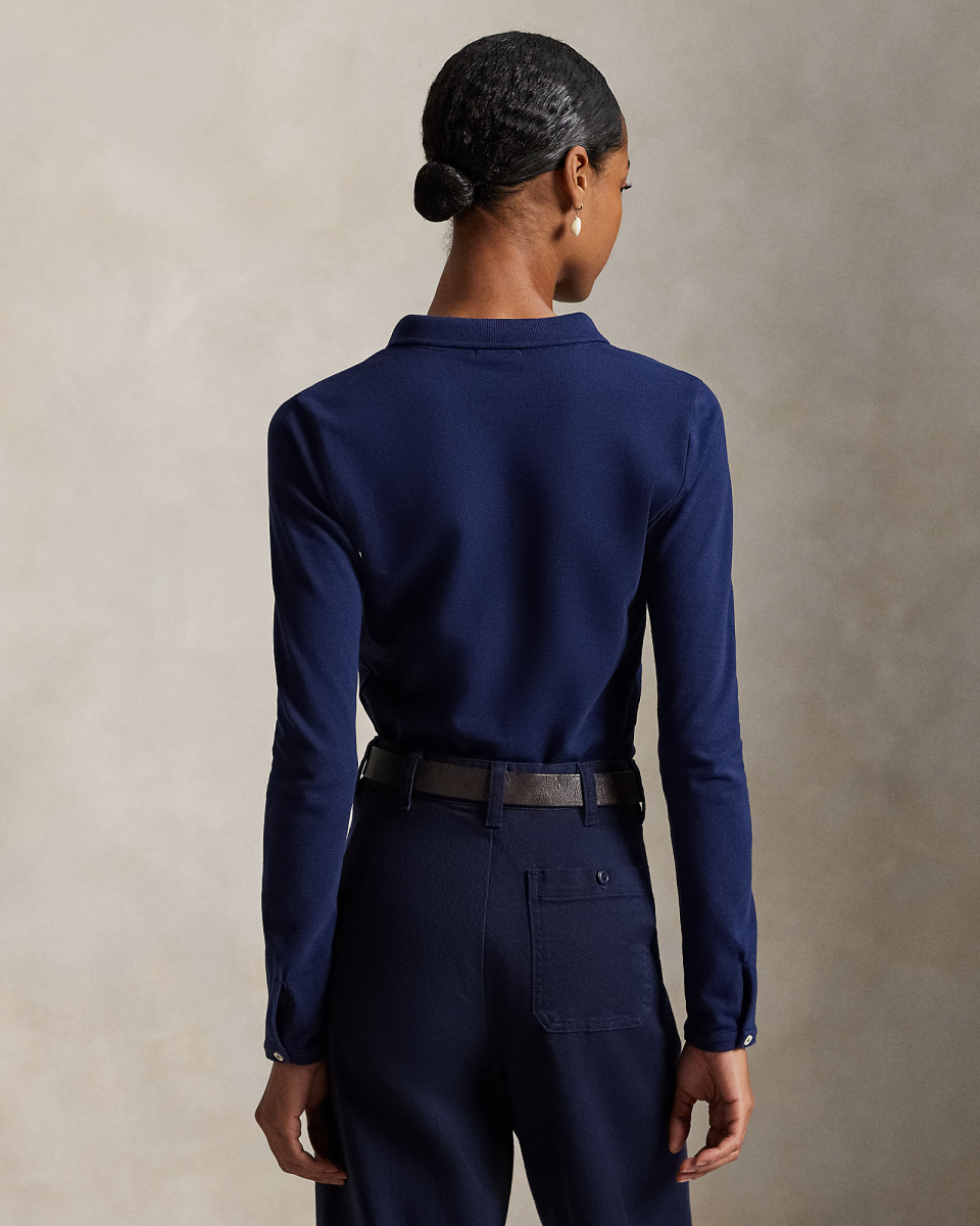 这款长袖 Polo 衫选用弹力珠地布制成,采用修身版型,搭配经典罗纹 Polo 领和全纽扣式门襟,胸前饰有标志性小马刺绣