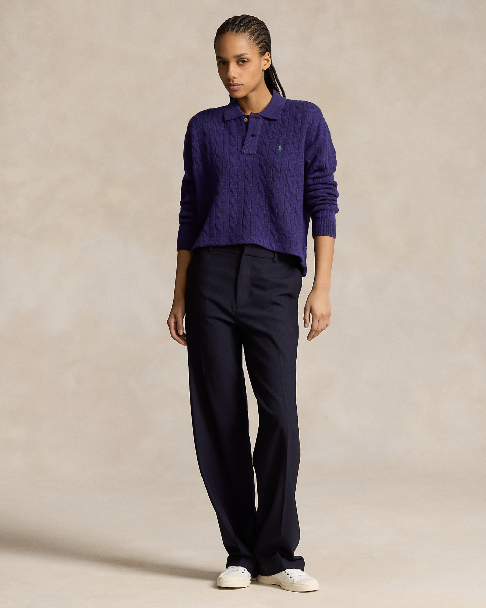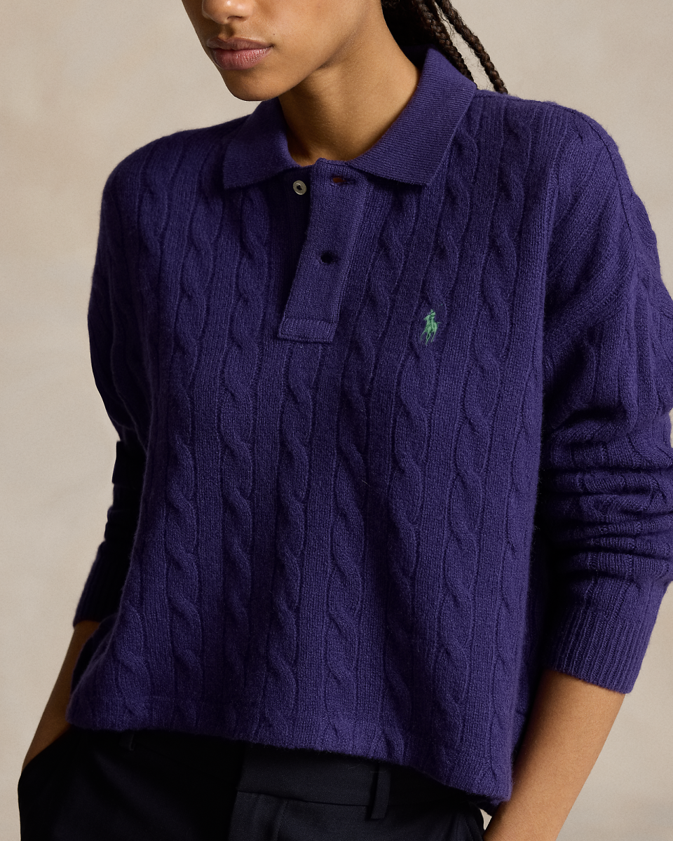 这款方正版型绞花编结 Polo 衫选用舒适的面料制成,饰有精美的标志性小马刺绣