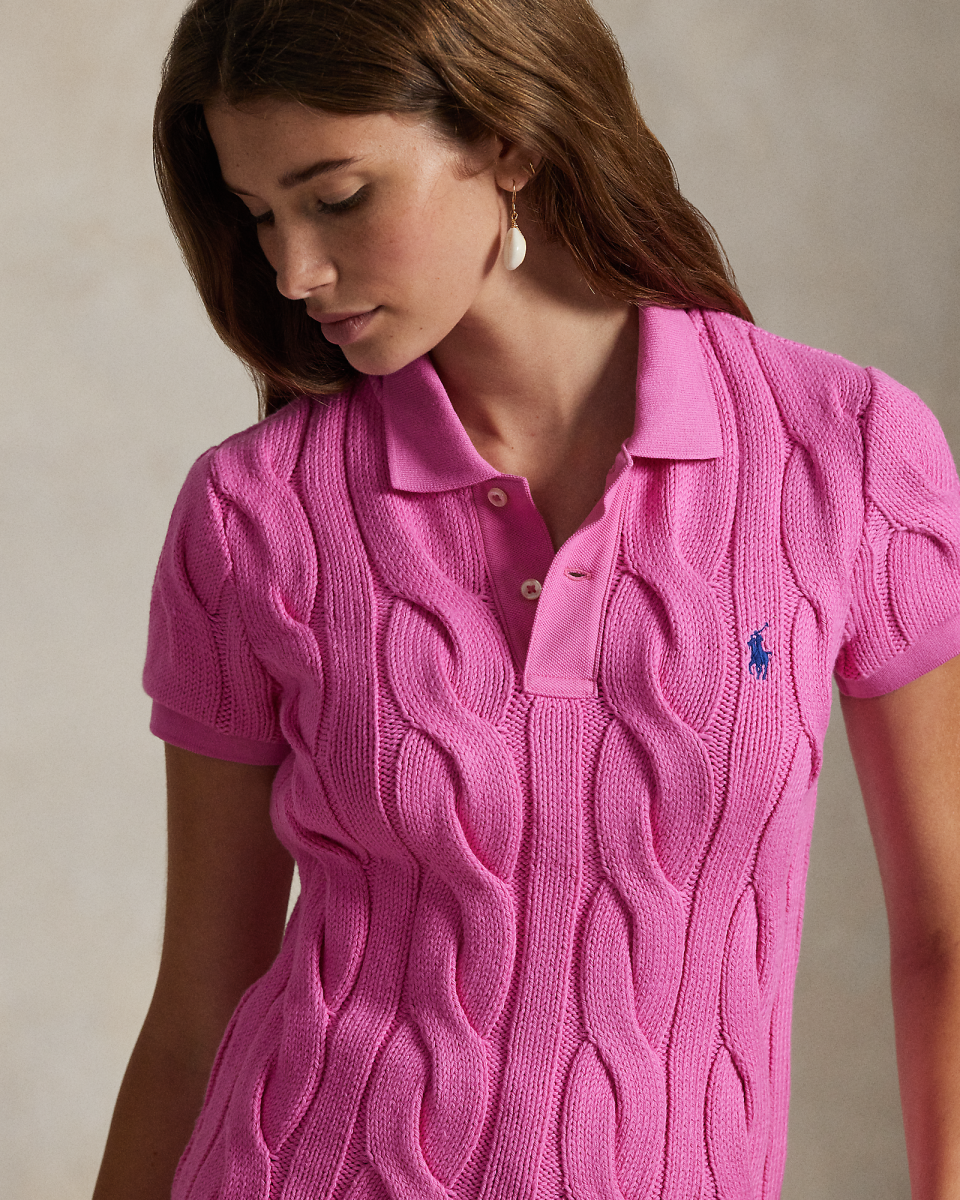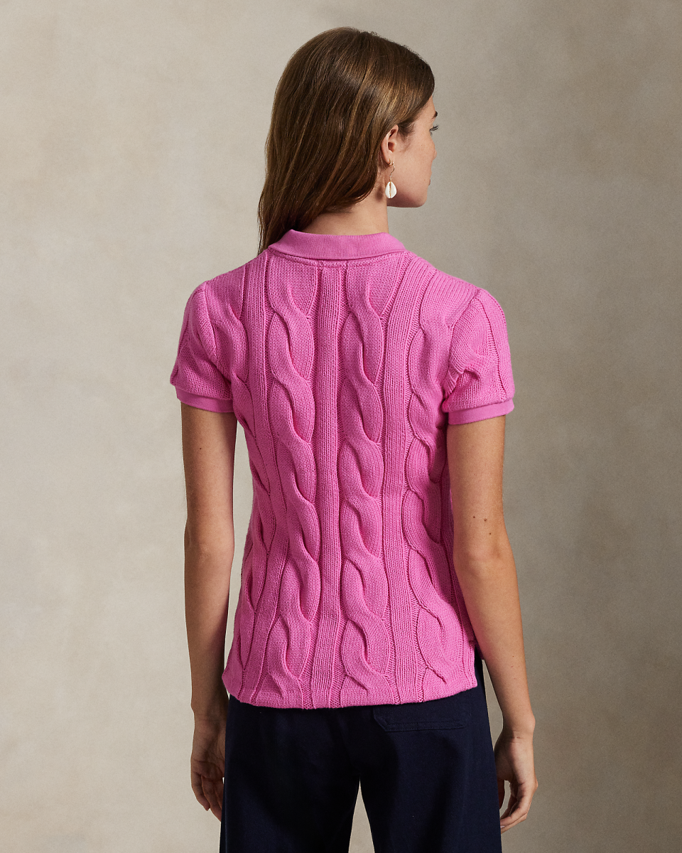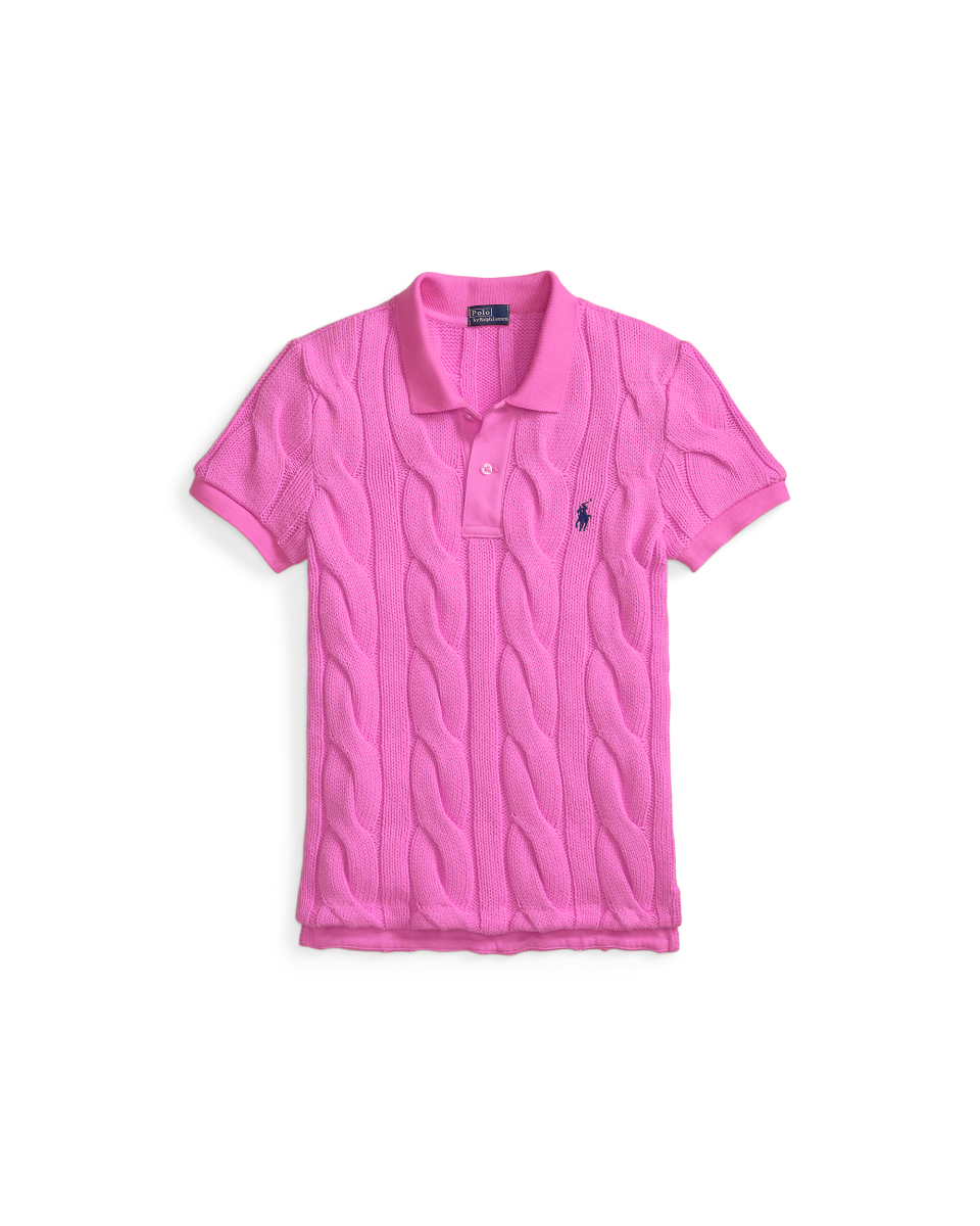 这款 Polo 衫选用棉质面料制成,采用修身版型,饰有大尺寸经典绞花编结纹理,胸前饰有标志性小马刺绣