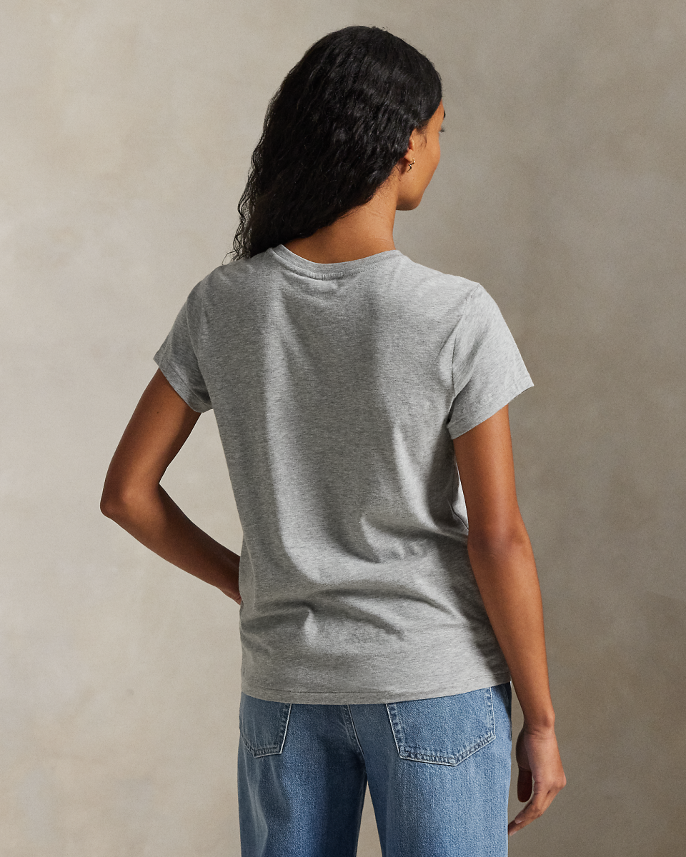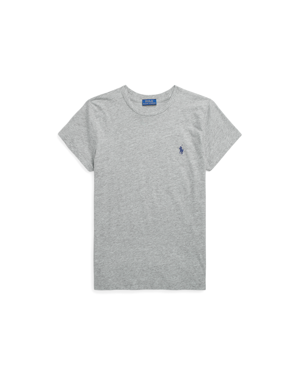 这款圆领 T 恤选用轻盈的棉质平纹针织面料制成,经成衣染色处理,是经典的 Polo 常备单品,胸前饰有小马刺绣,彰显标志性风格