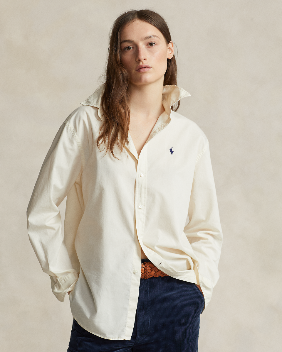 这款衬衫选用斜纹棉布制成,采用大号廓形,经水洗处理,柔软度佳,饰以富有光泽的纽扣和标志性 Polo 小马刺绣