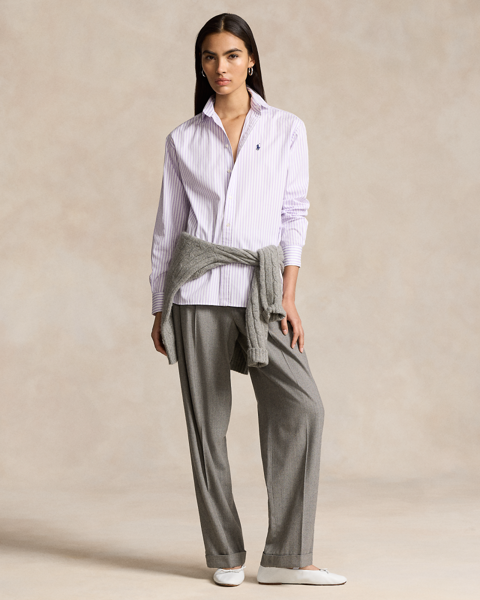 这款条纹棉质衬衫采用宽松版型,饰有标志性小马刺绣