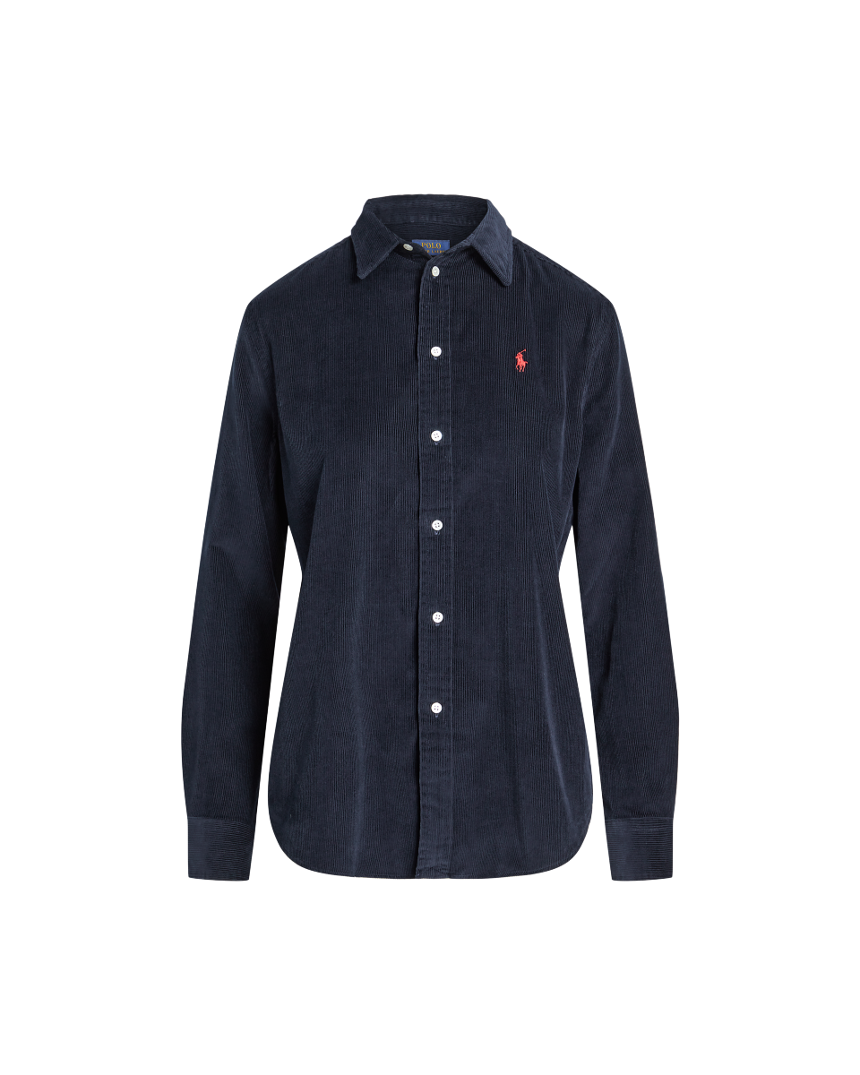 这款经典纽扣衬衫选用细棱纹棉质灯芯绒制成,采用宽松版型,质感轻盈,具有良好的垂坠感,胸前饰有标志性小马刺绣