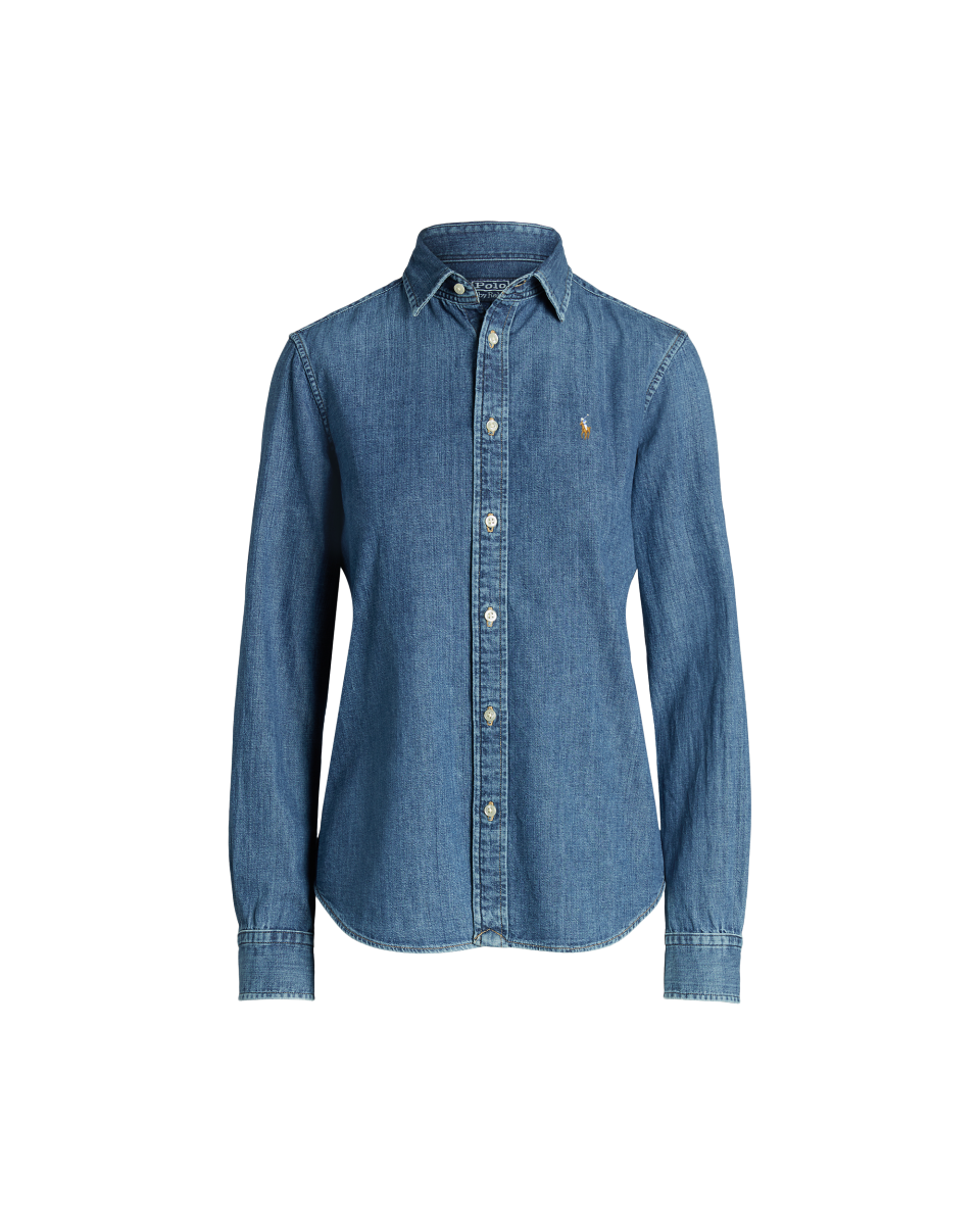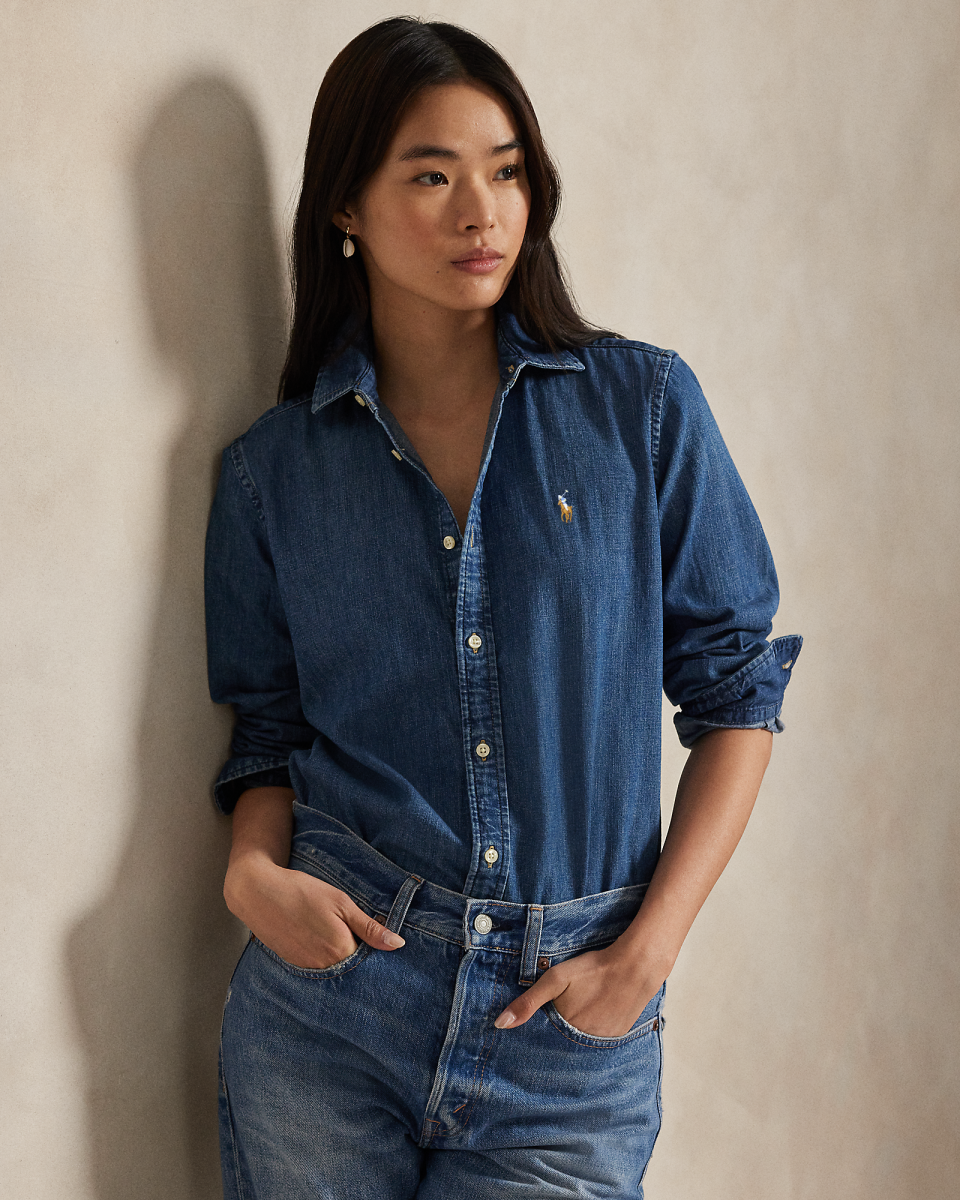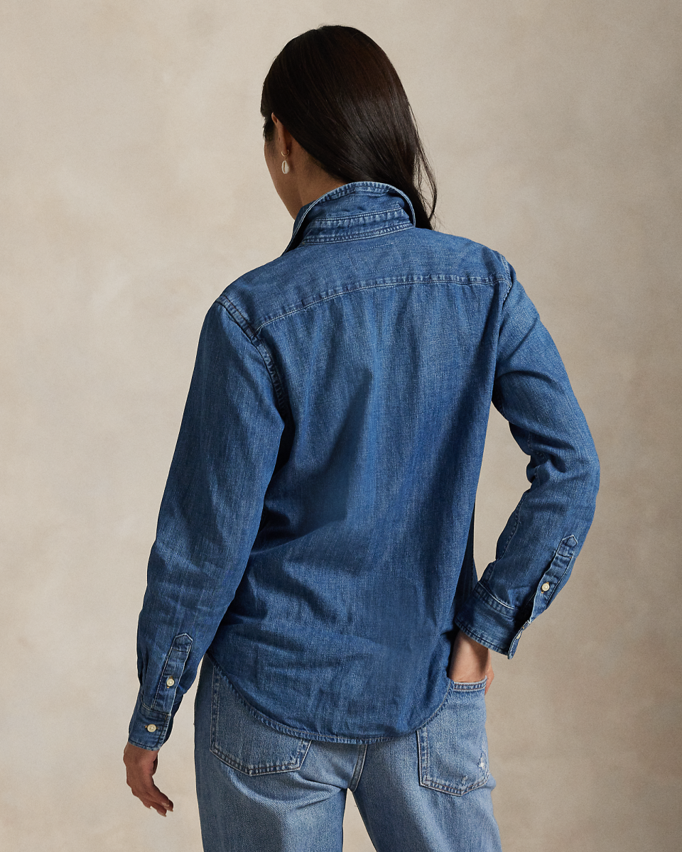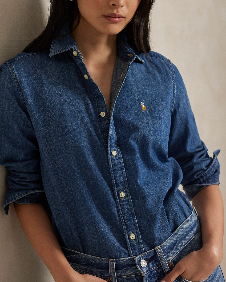 这款牛仔布衬衫选用斜纹棉布制成,经水洗处理,呈现中度至深度靛蓝色调,手感柔软,经打磨处理,从一开始就呈现舒适的做旧外观,饰有精美的彩色小马刺绣,彰显标志性风格