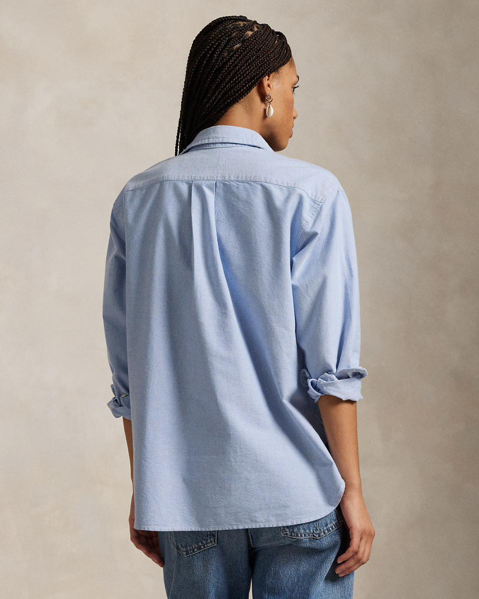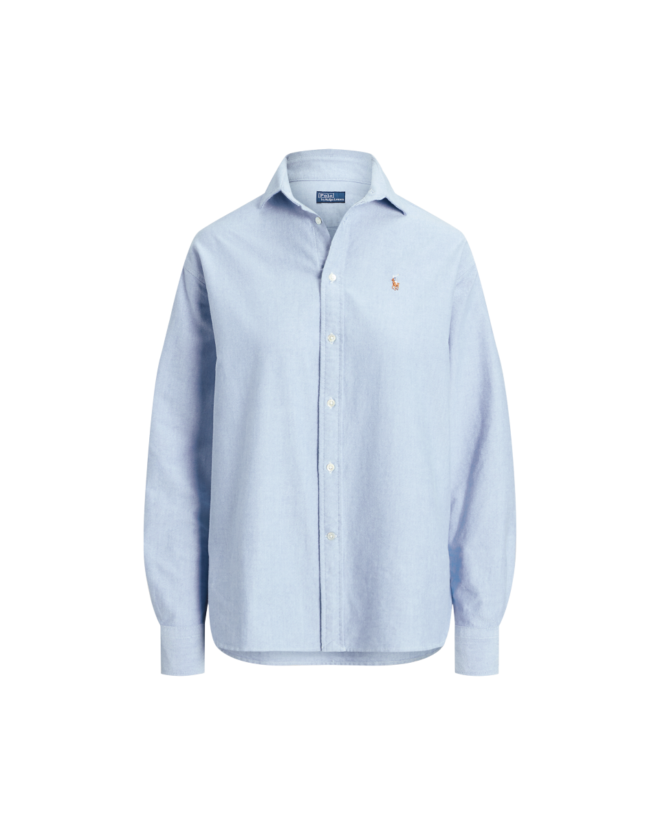 这款衬衫选用 Ralph Lauren 标志性棉质牛津布制成,采用宽松版型,胸前左侧饰有彩色小马刺绣