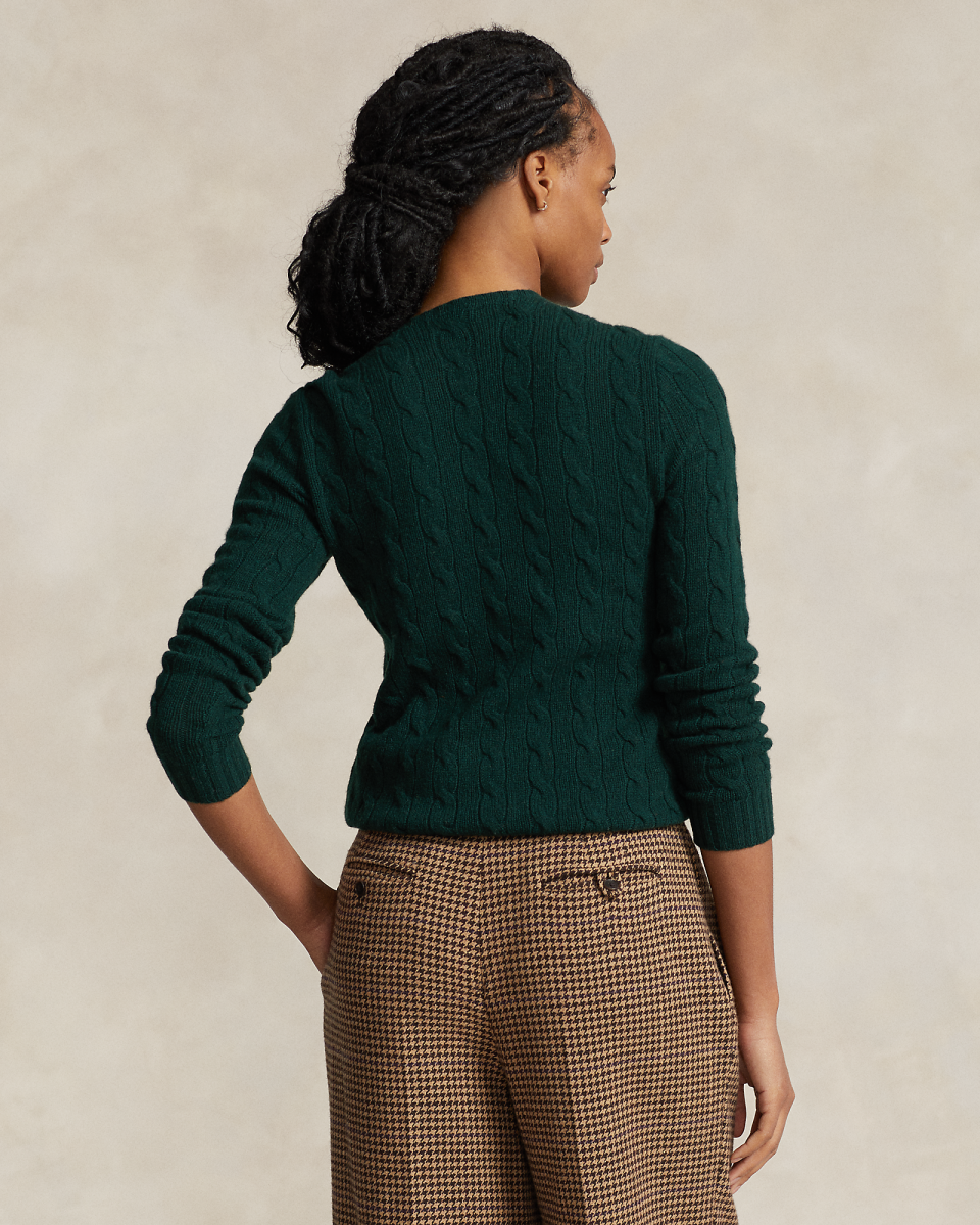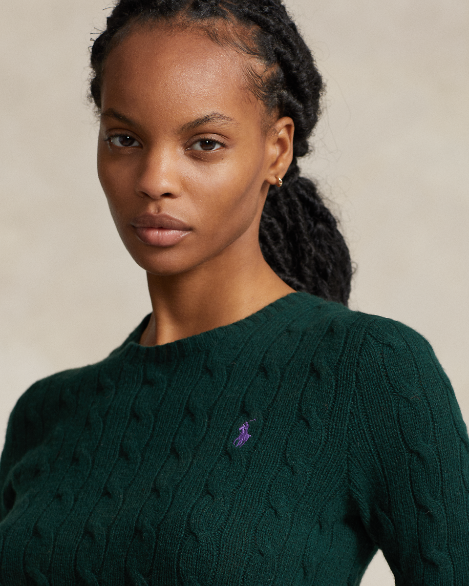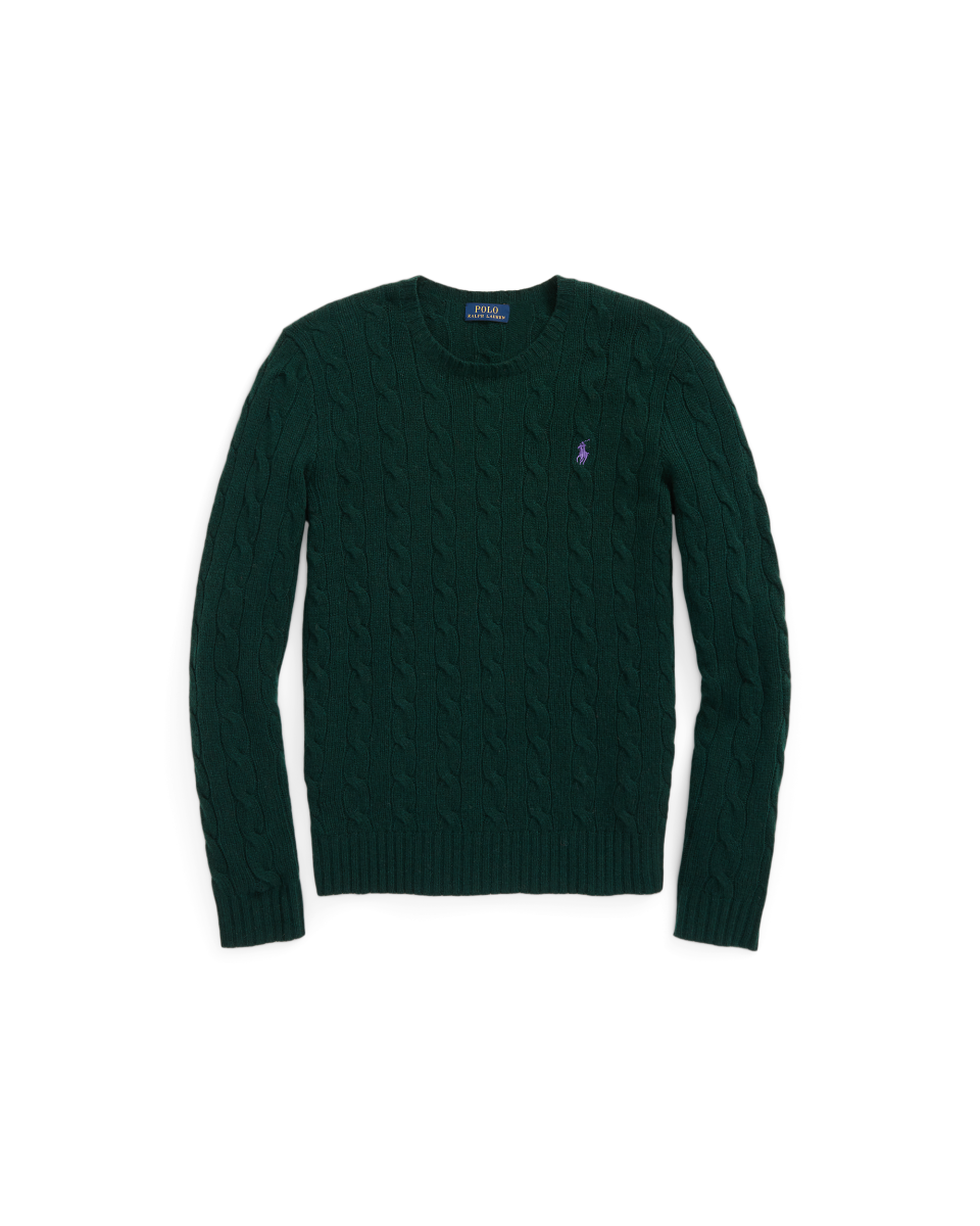 这款经典的圆领针织毛衫选用舒适的纱线织就,采用具有纹理感的绞花编结结构和修身廓形,柔软垂顺, 胸前左侧饰有精心绣成的标志性小马图案,呈现复古风格