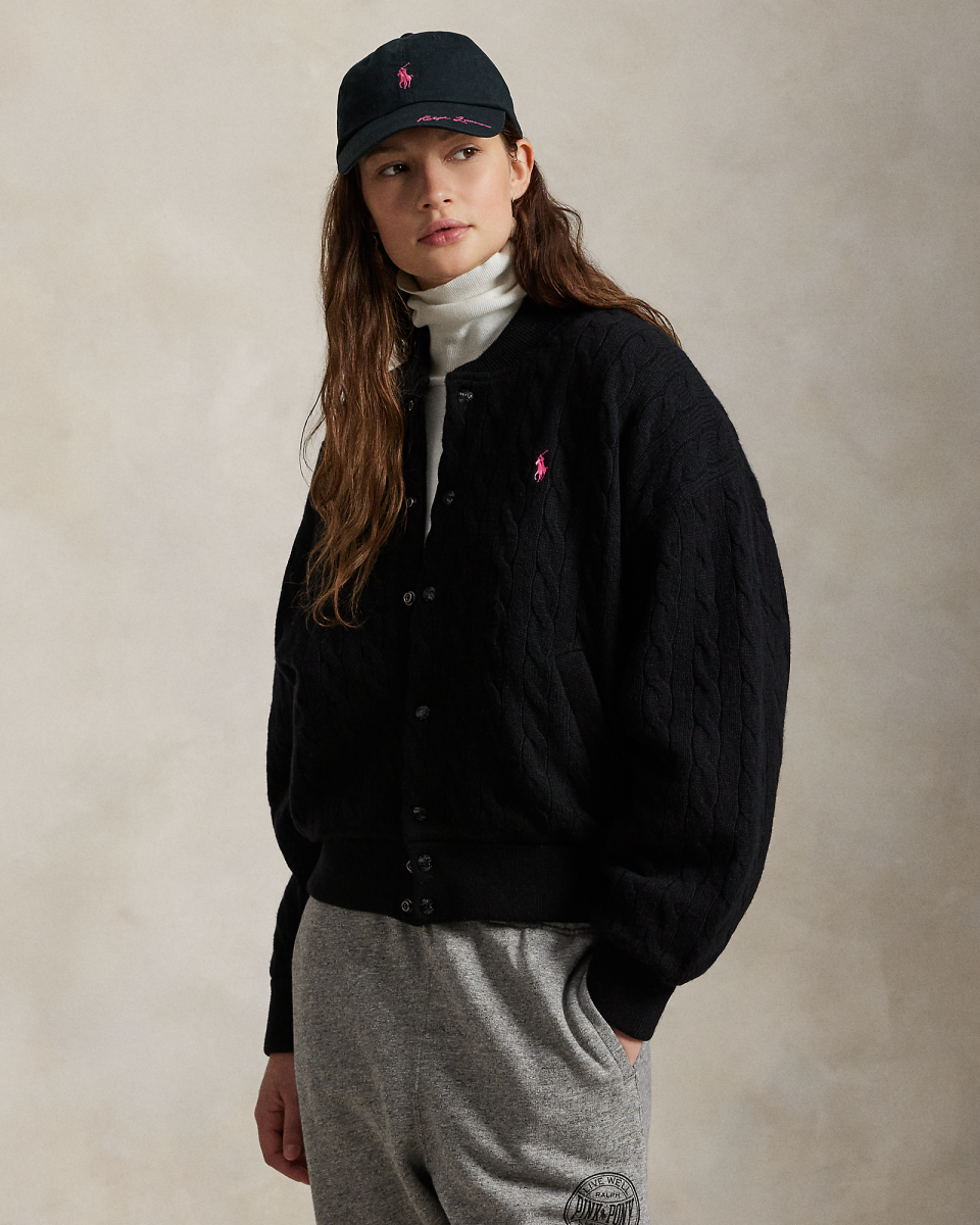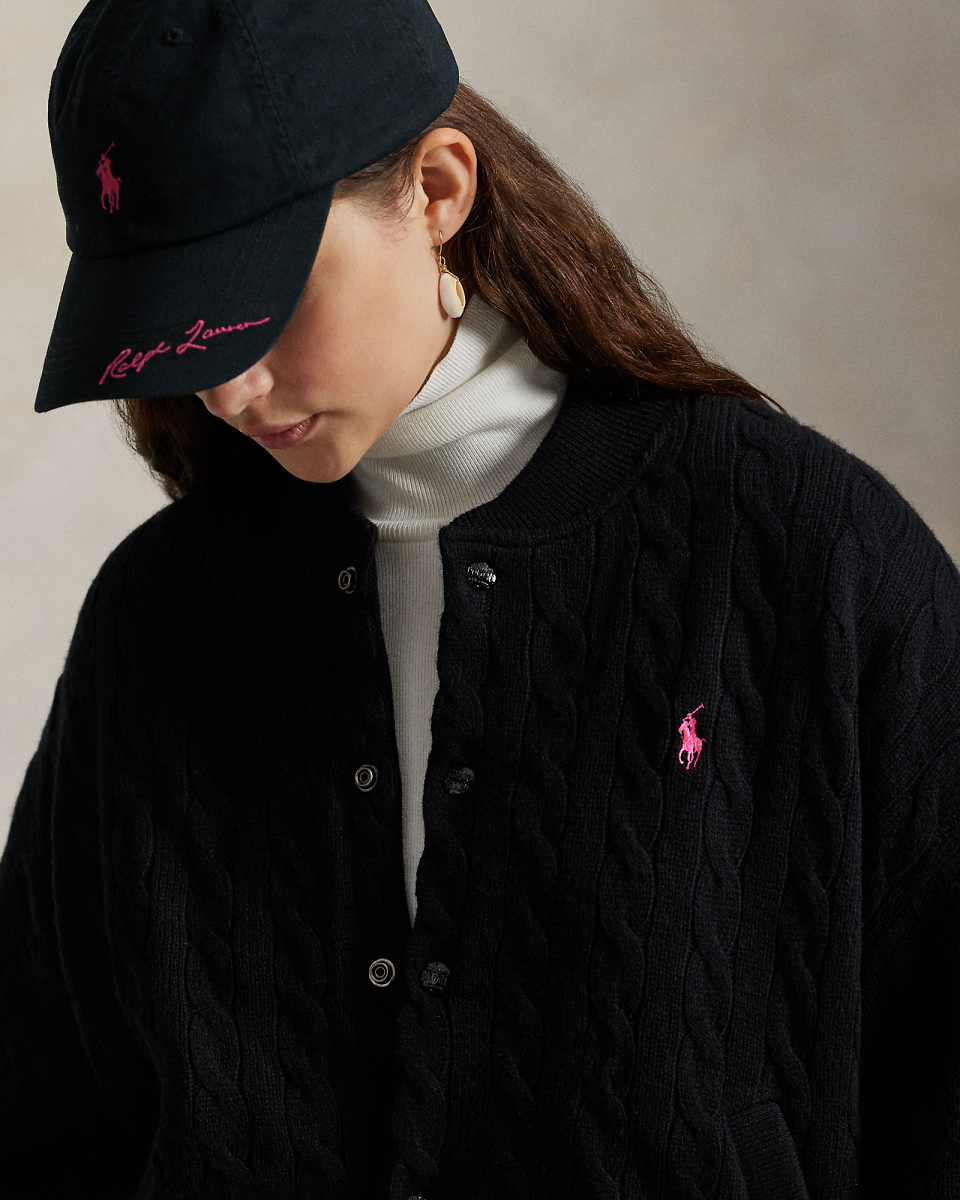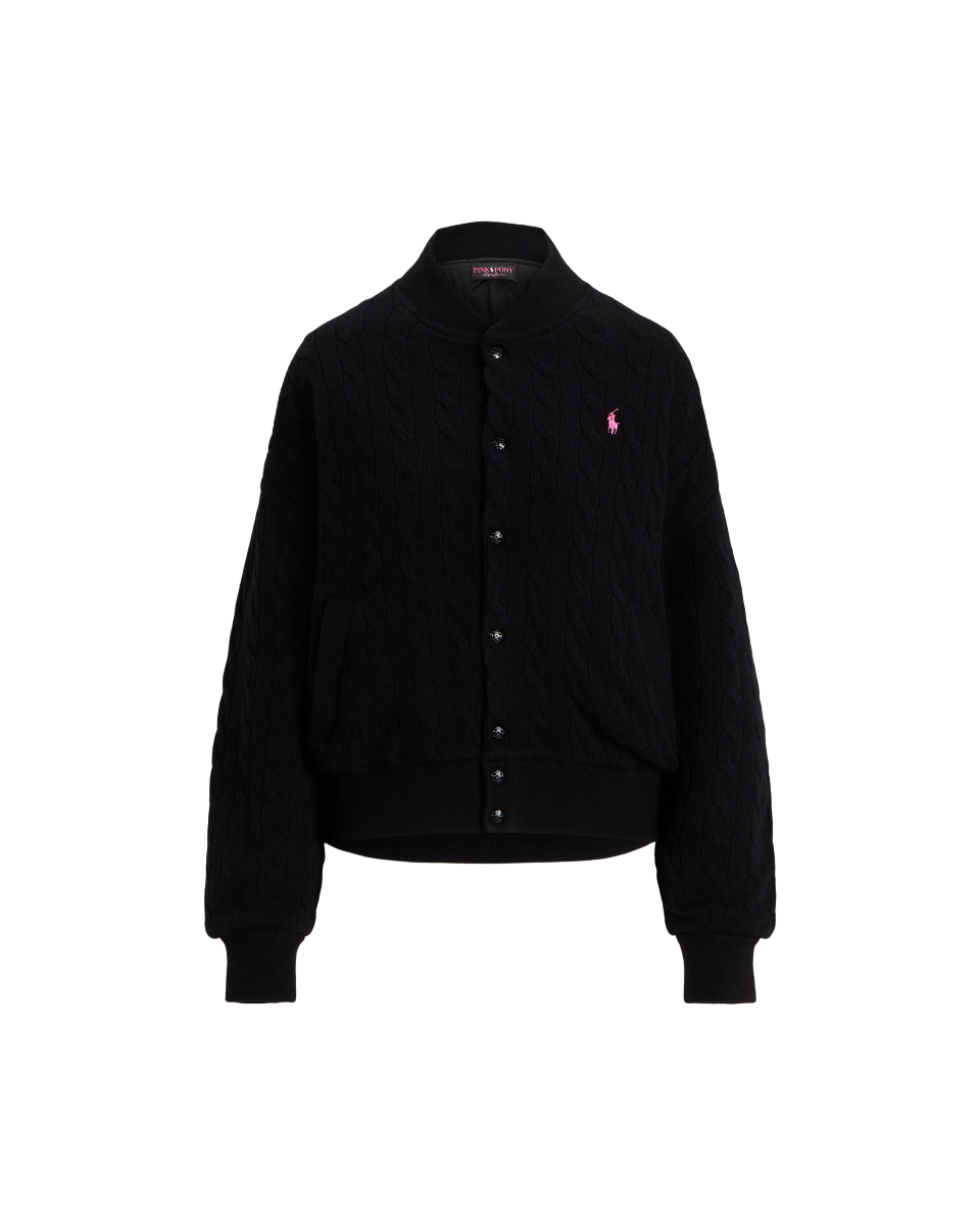 Pink Pony宽松版绞花编结棒球夹克