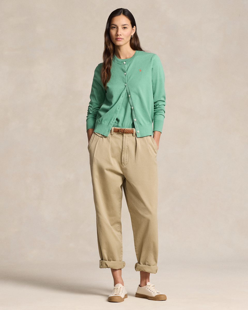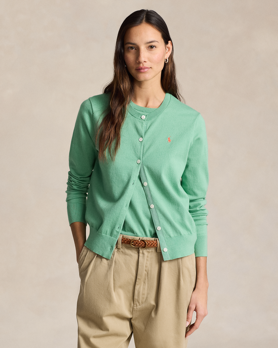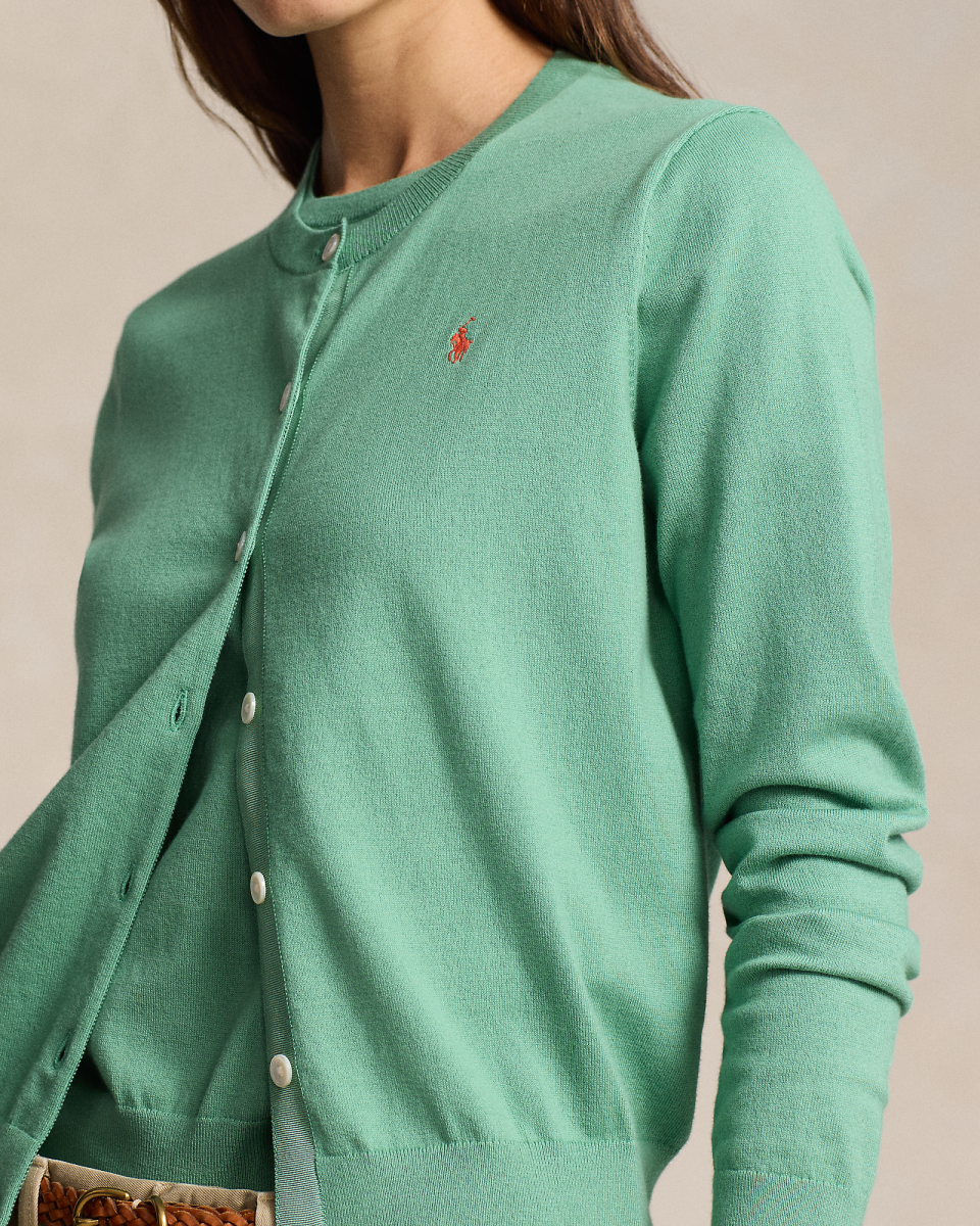 这款针织开襟衫选用舒适的面料制成,饰有标志性小马刺绣,彰显经典风格,是一款常备单品