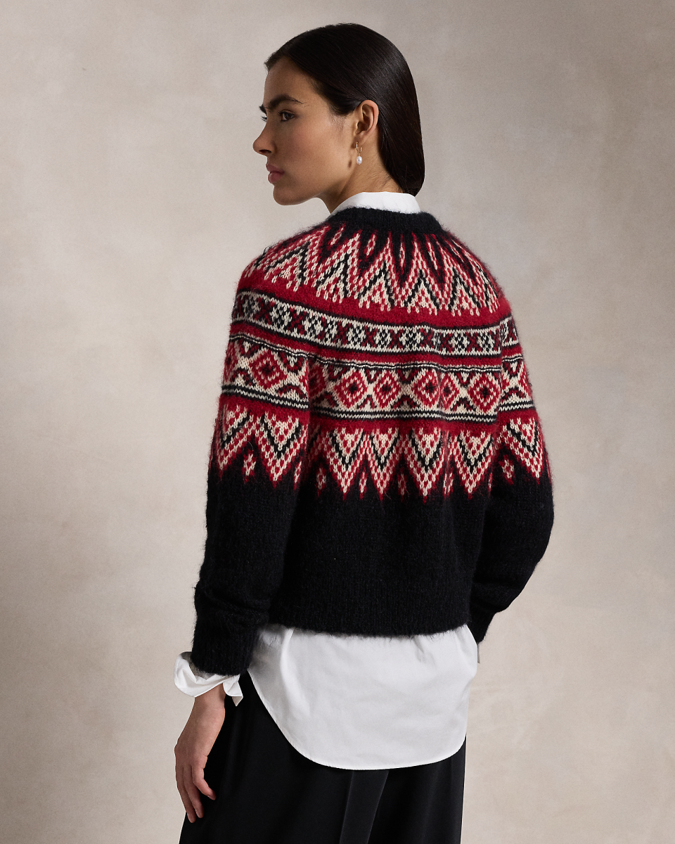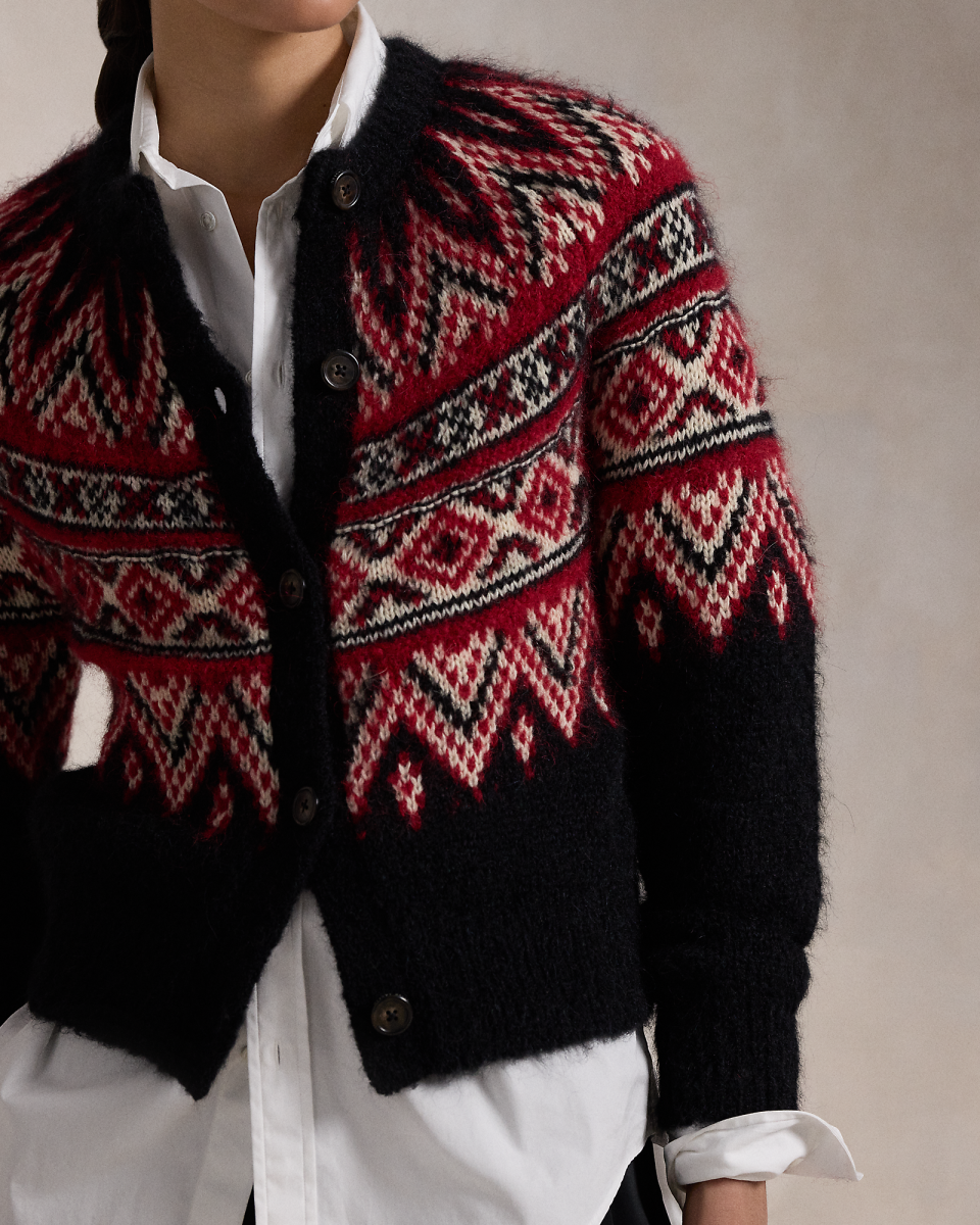 这款纽扣式针织开襟衫选用舒适的面料精心制成,兼具保暖性与柔软质感,饰有以提花针织工艺打造的精美费尔岛风格图案
