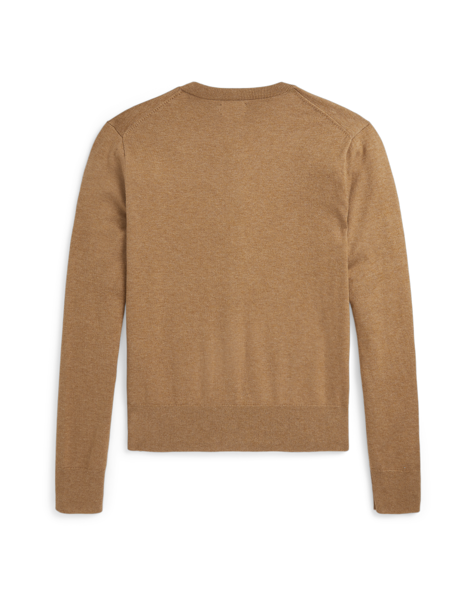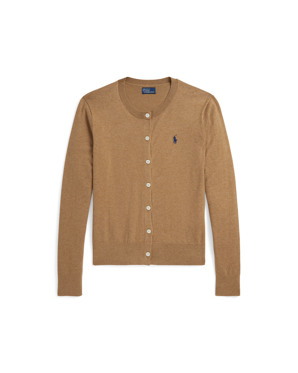 这款圆领针织开襟衫选用顺滑的面料制成,搭配纽扣式门襟,胸前饰有标志性小马刺绣