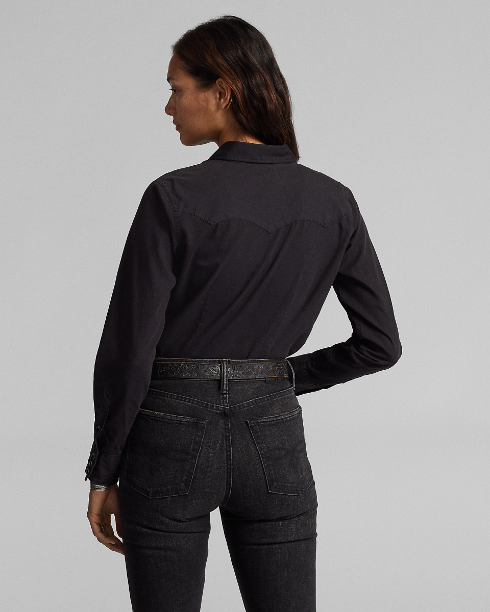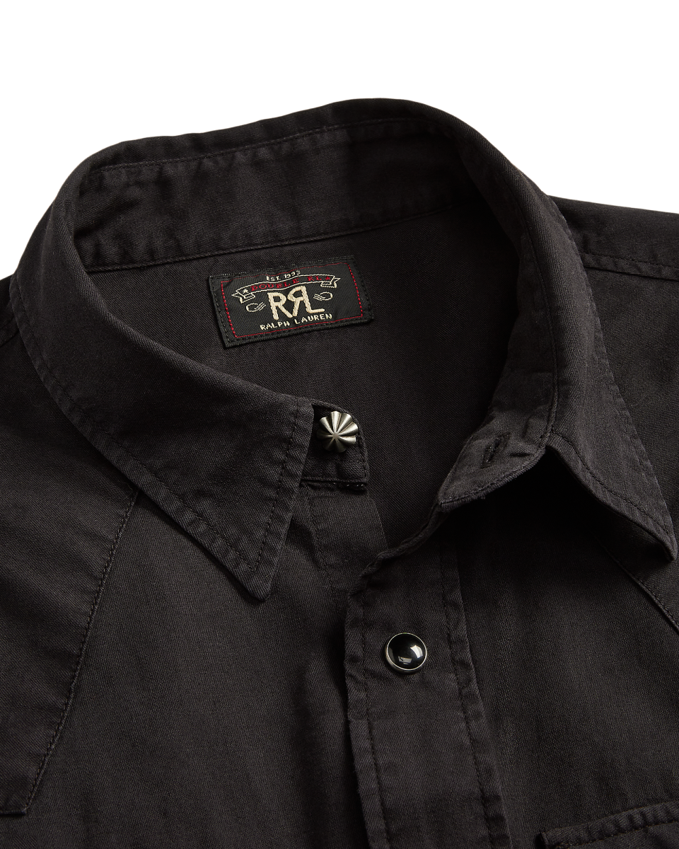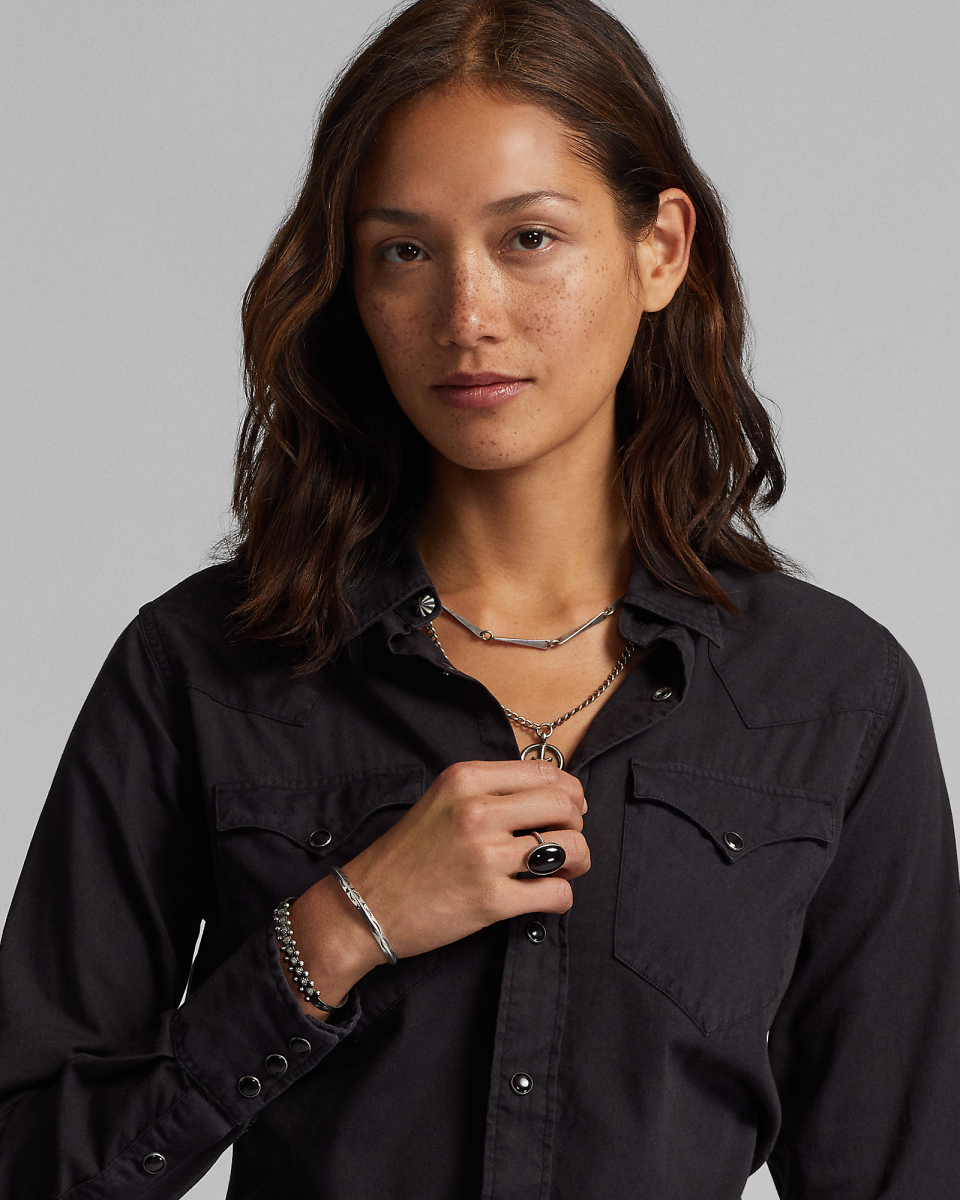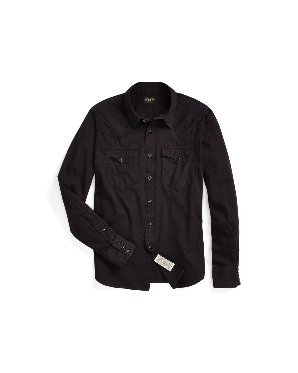 这款衬衫选用成衣染色斜纹棉布制成,灵感源自 20 世纪 50 年代的美式西部风格衬衫,按扣式门襟、口袋和袖口,配有美式西部风格前后过肩