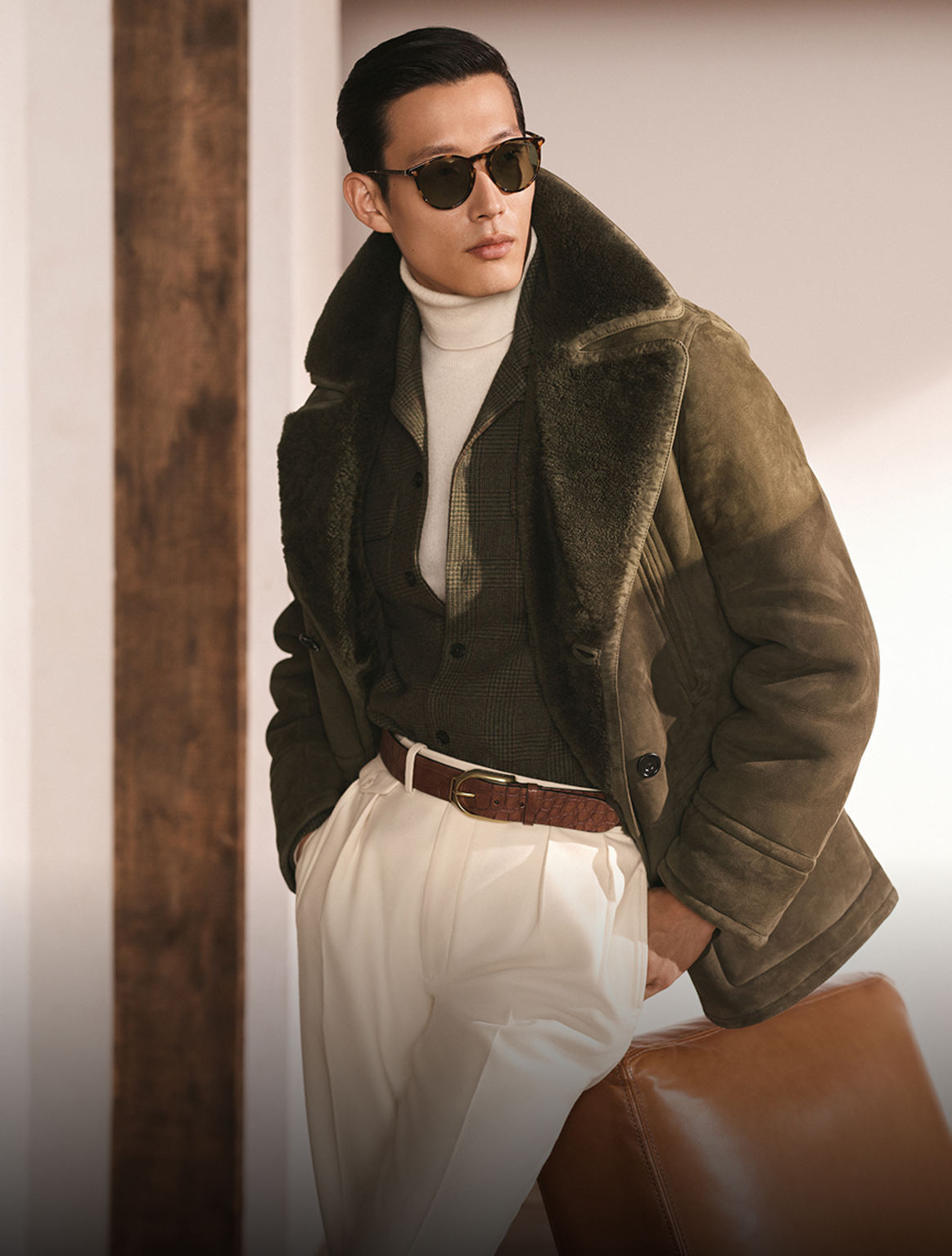 靴,或考究定制单品搭配毛羊皮夹克和复