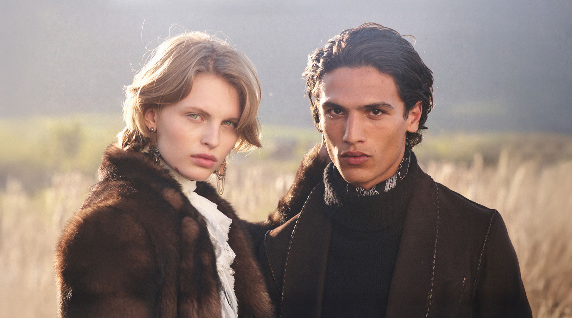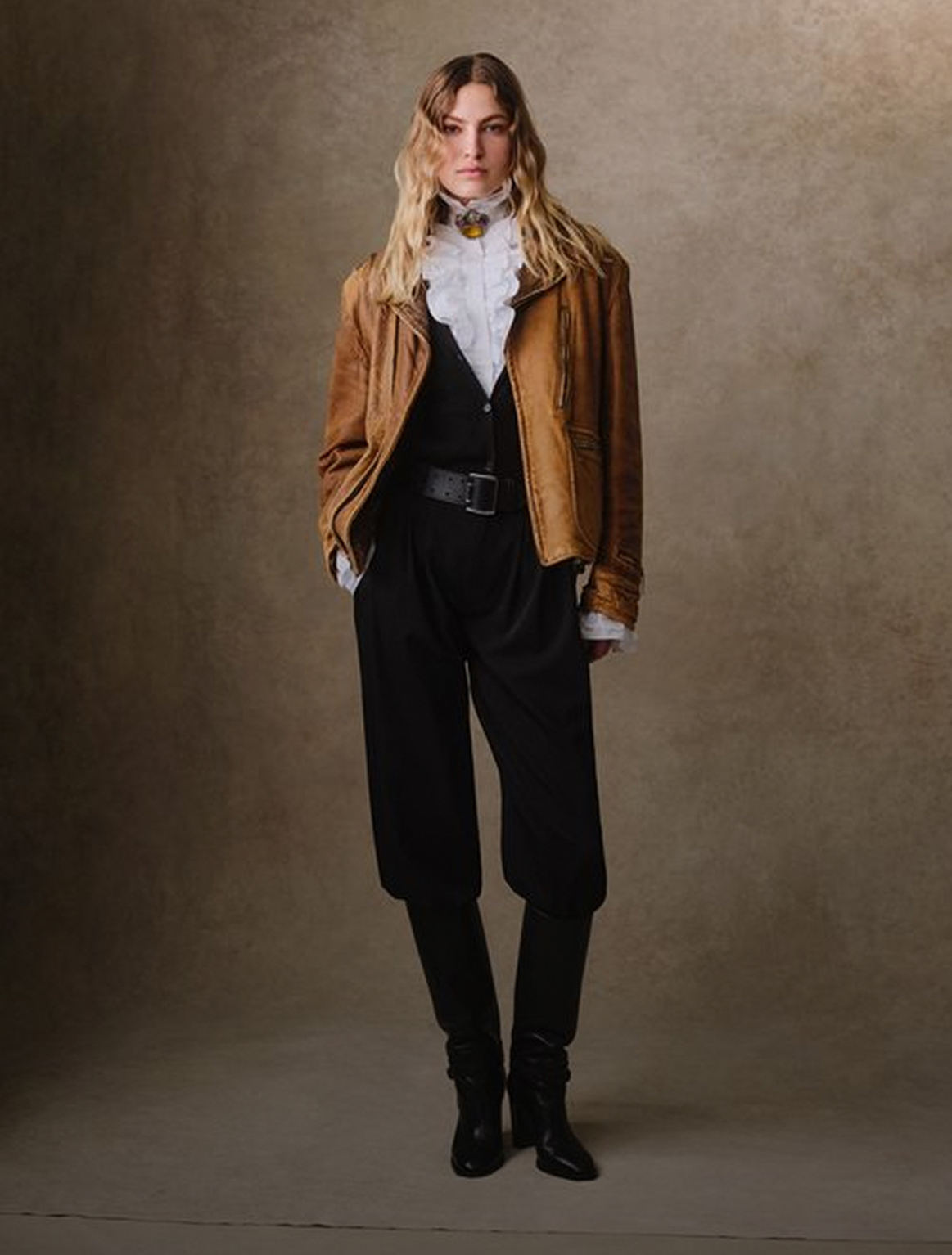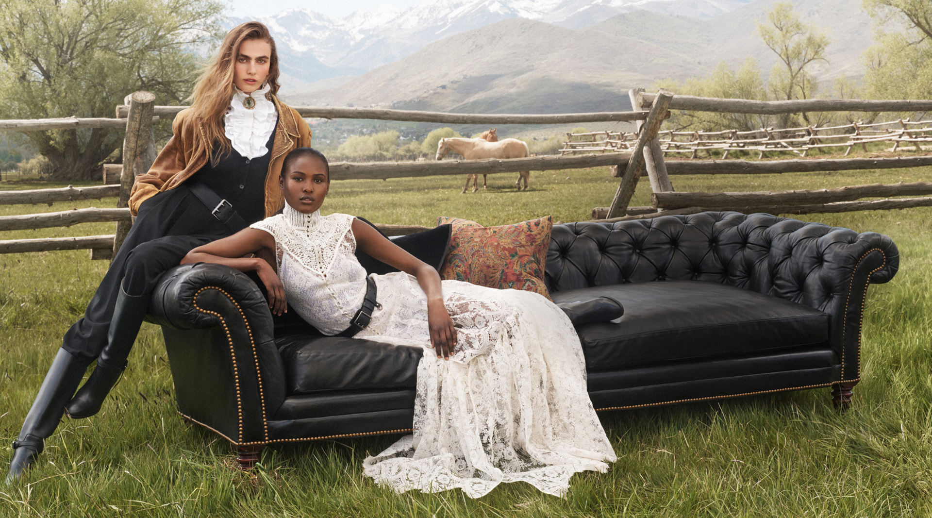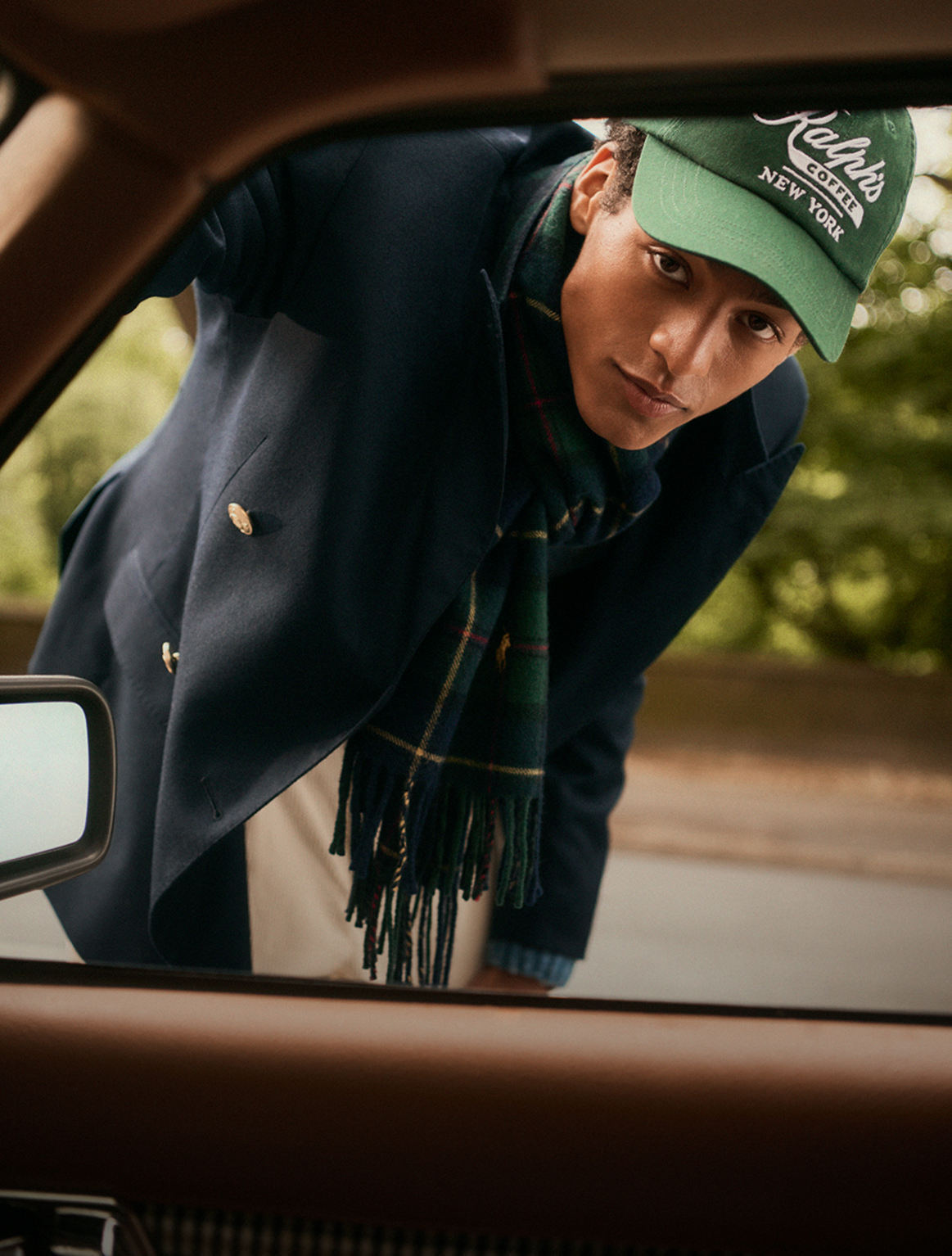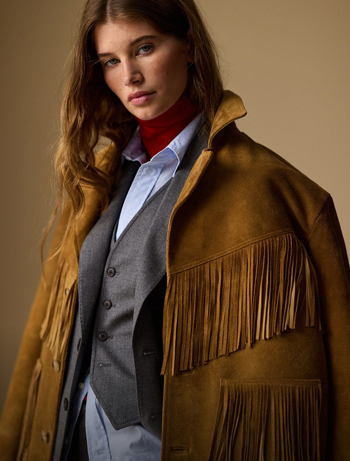 在无边无际的地平线上,崎岖的山峦绵延不绝,马儿在篱栏边悠然吃草,老旧的红色卡车则在无尽的碎石路上隆隆前行。Ralph Lauren 2025 年秋季系列以这幅电影般的画面为灵感源泉,演绎恒久经典的美式奢华格调
